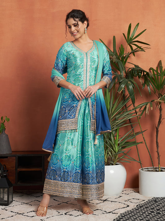 Women's Bandhani Silk Blend Kurta and Palazzo Set