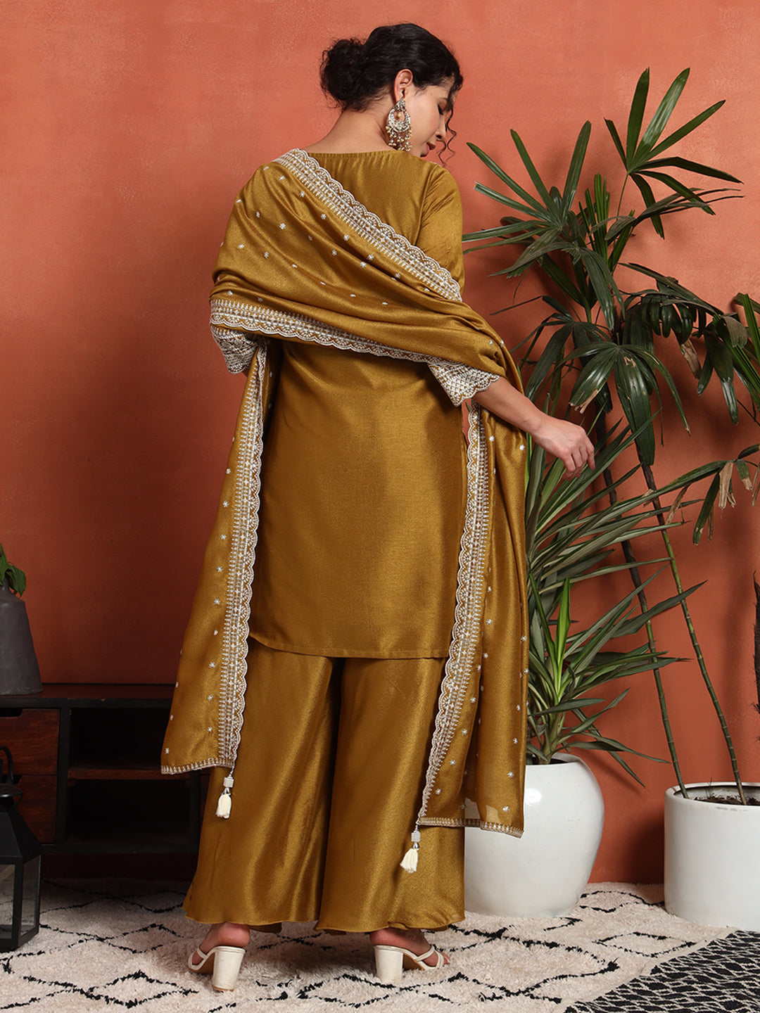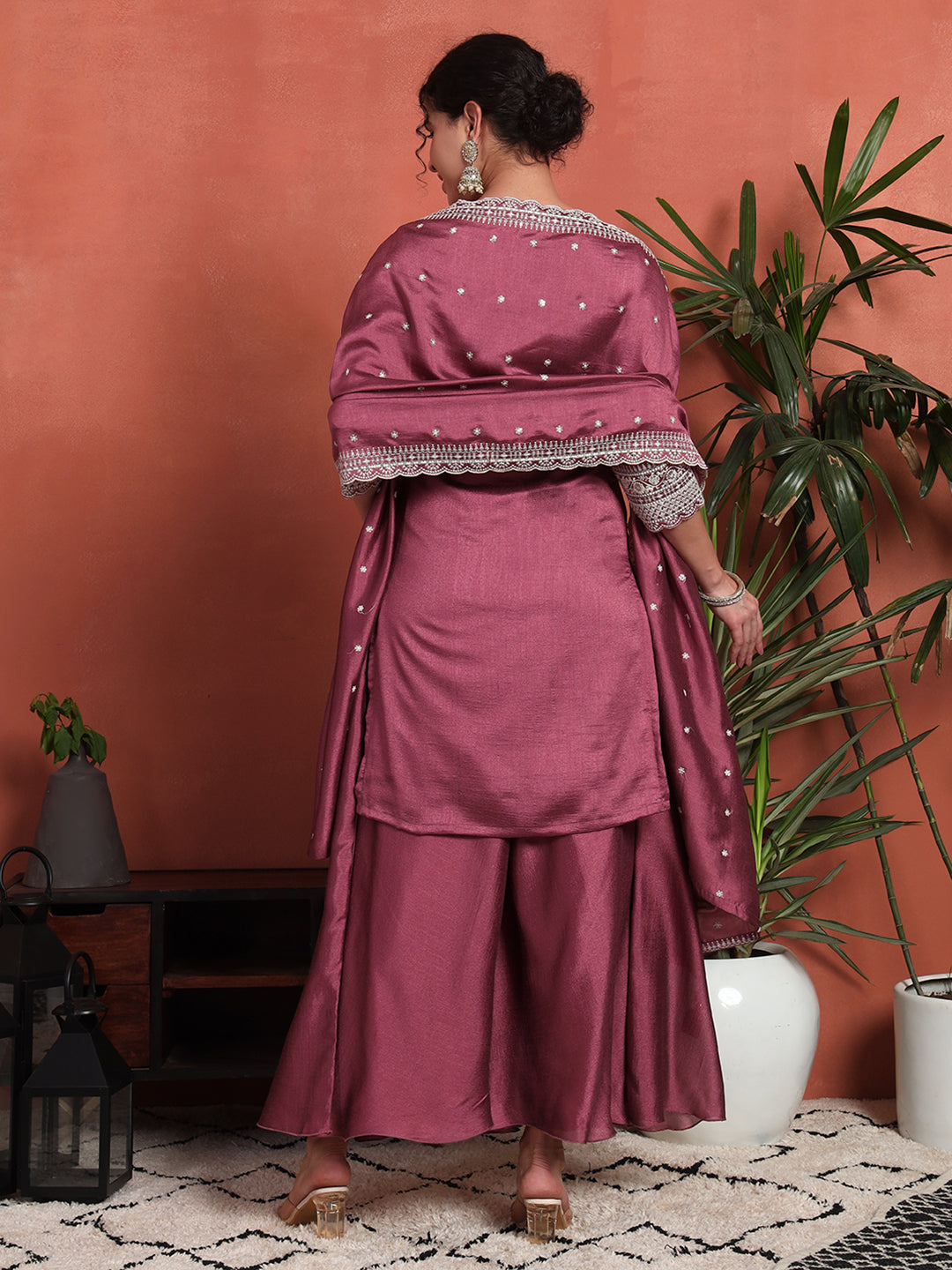 Women's Embroidered Silk Blend Kurta and Palazzo Set