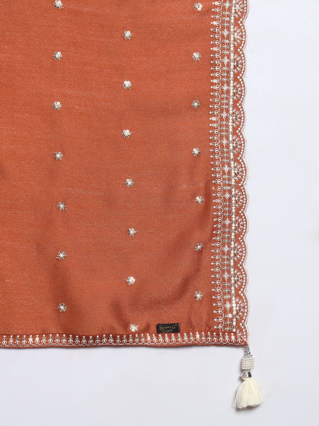 Elevate your ethnic wardrobe with this exquisite embroidered kurta suit, beautifully paired with matching palazzo. Crafted from luxurious silk, this kurta palazzo set features a straight silhouette, round neck, and 3/4 sleeves, ensuring both style and comfort. The palazzo comes with an elasticated belt for a perfect fit, while the matching dupatta, adorned with charming tassels, completes the look. Perfect for festive occasions or casual gatherings, this ensemble promises to make a lasting impression.