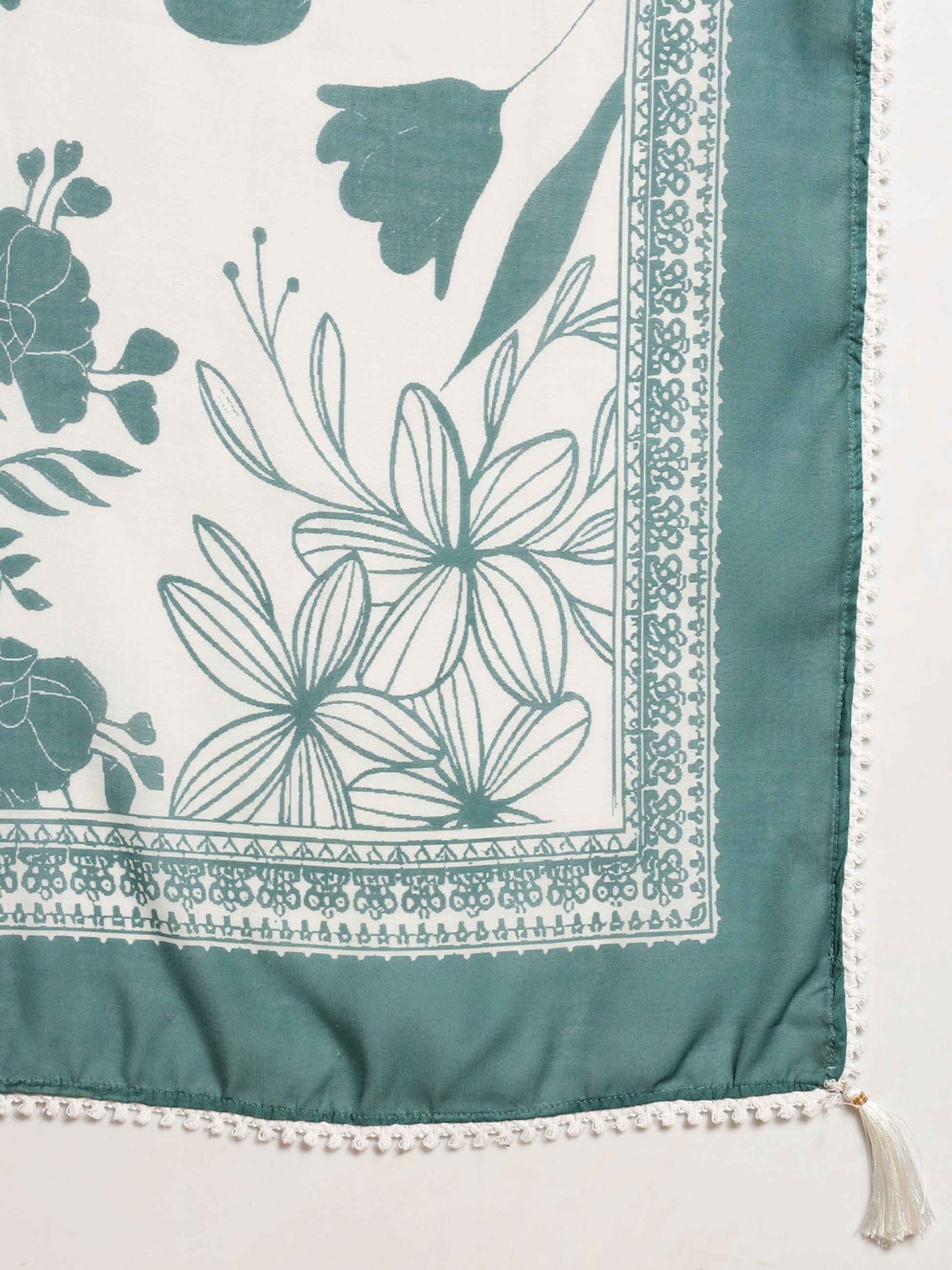 Aqua Green Checkered Viscose Women's Kurta, Pyjama & Dupatta Set