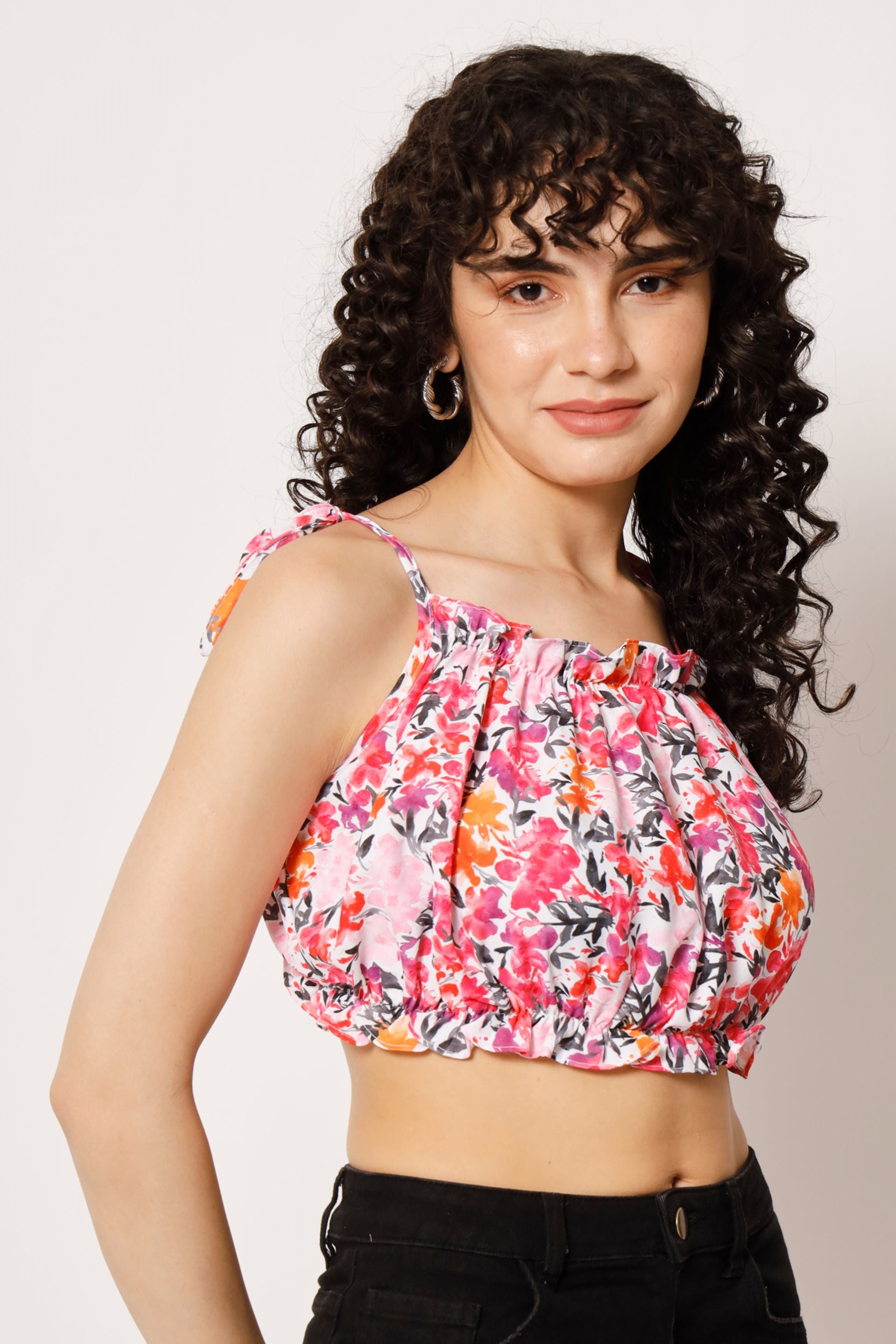 Elevate your summer wardrobe with our stunning floral print crop top, designed for the modern woman who loves to make a statement. Featuring a chic square neck and sleeveless design, this top offers a flattering fit that pairs beautifully with high-waisted jeans or skirts. The delicate floral patterns adds a touch of femininity, making it perfect for both casual outings and special occasions. Embrace effortless style and comfort with this must-have piece that will surely become a staple in your collection.