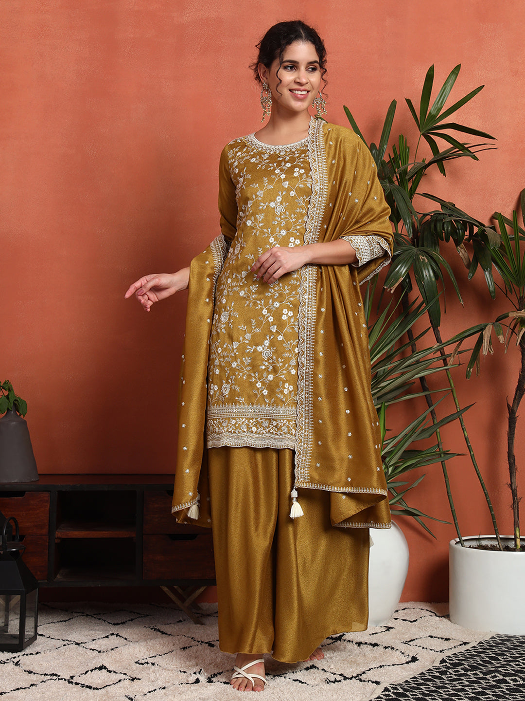 Women's Embroidered Silk Blend Kurta and Palazzo Set