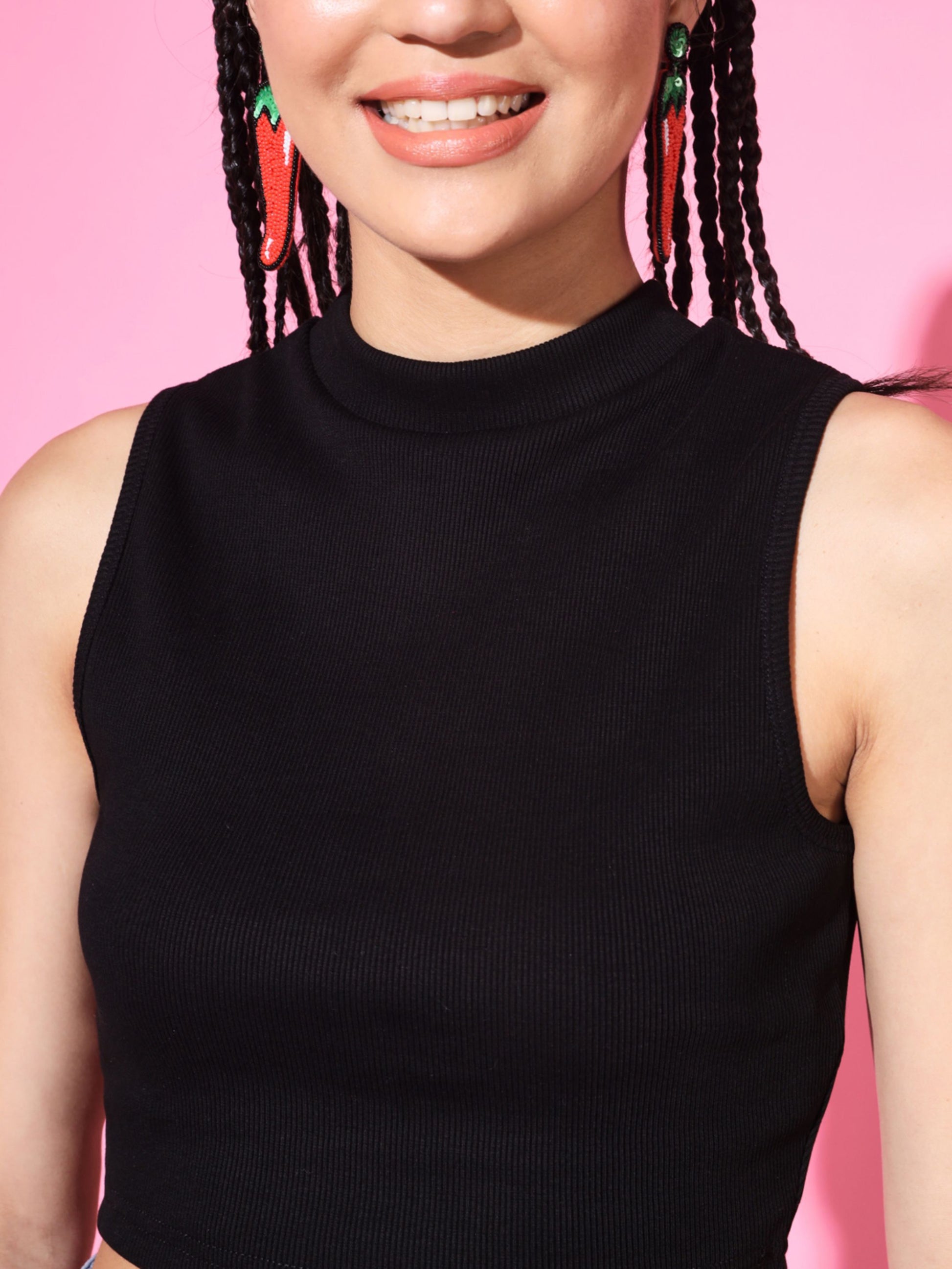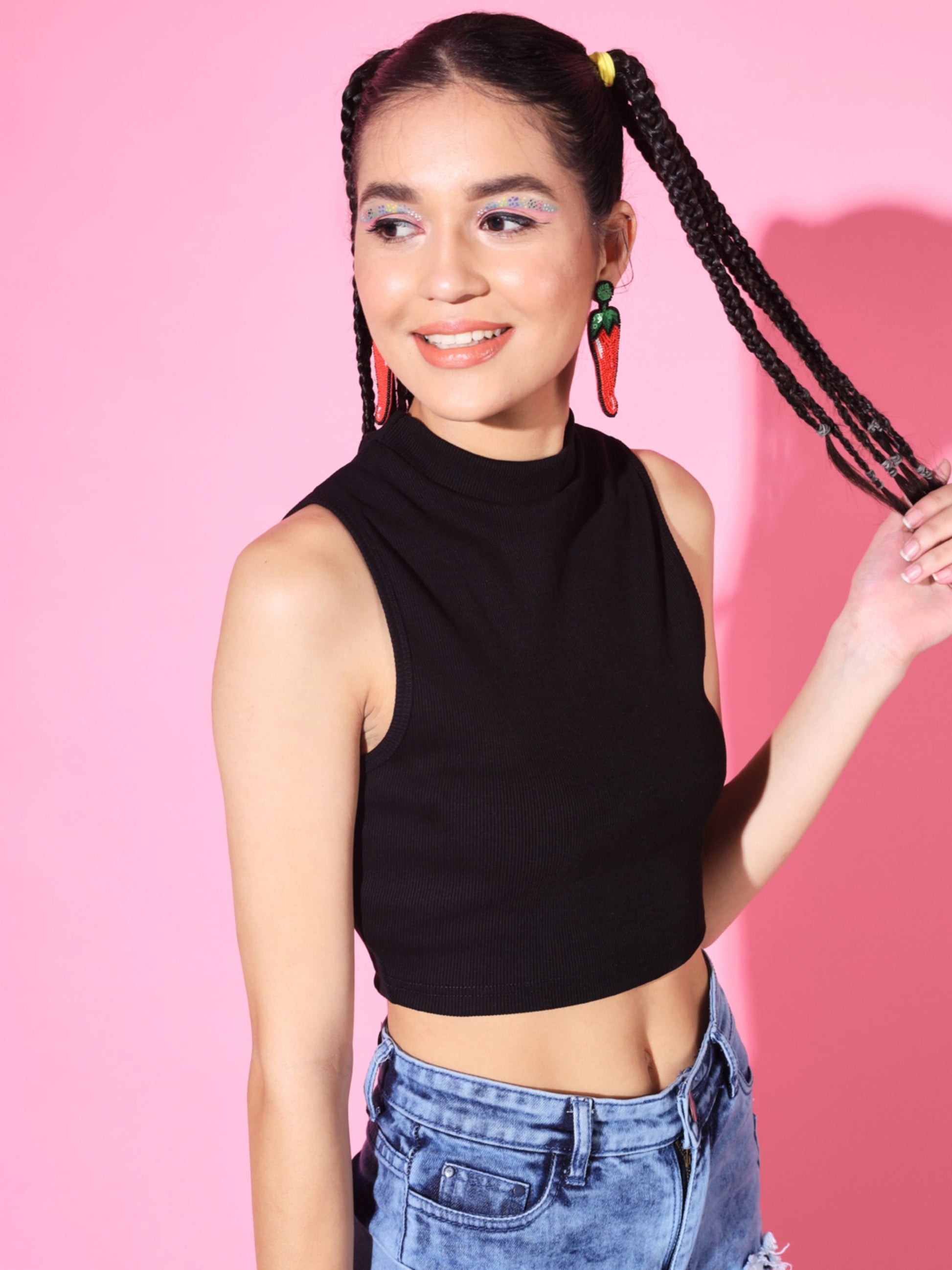 Elevate your casual wardrobe with our chic High Neck Crop Top, designed for the modern woman who values both style and comfort. This solid tank top features a flattering crop length and sleeveless design, making it perfect for layering or wearing on its own. The high neck adds a touch of sophistication, while the versatile black color pairs effortlessly with your favorite jeans or skirts. Embrace effortless elegance and make a statement with this essential piece that transitions seamlessly from day to night.