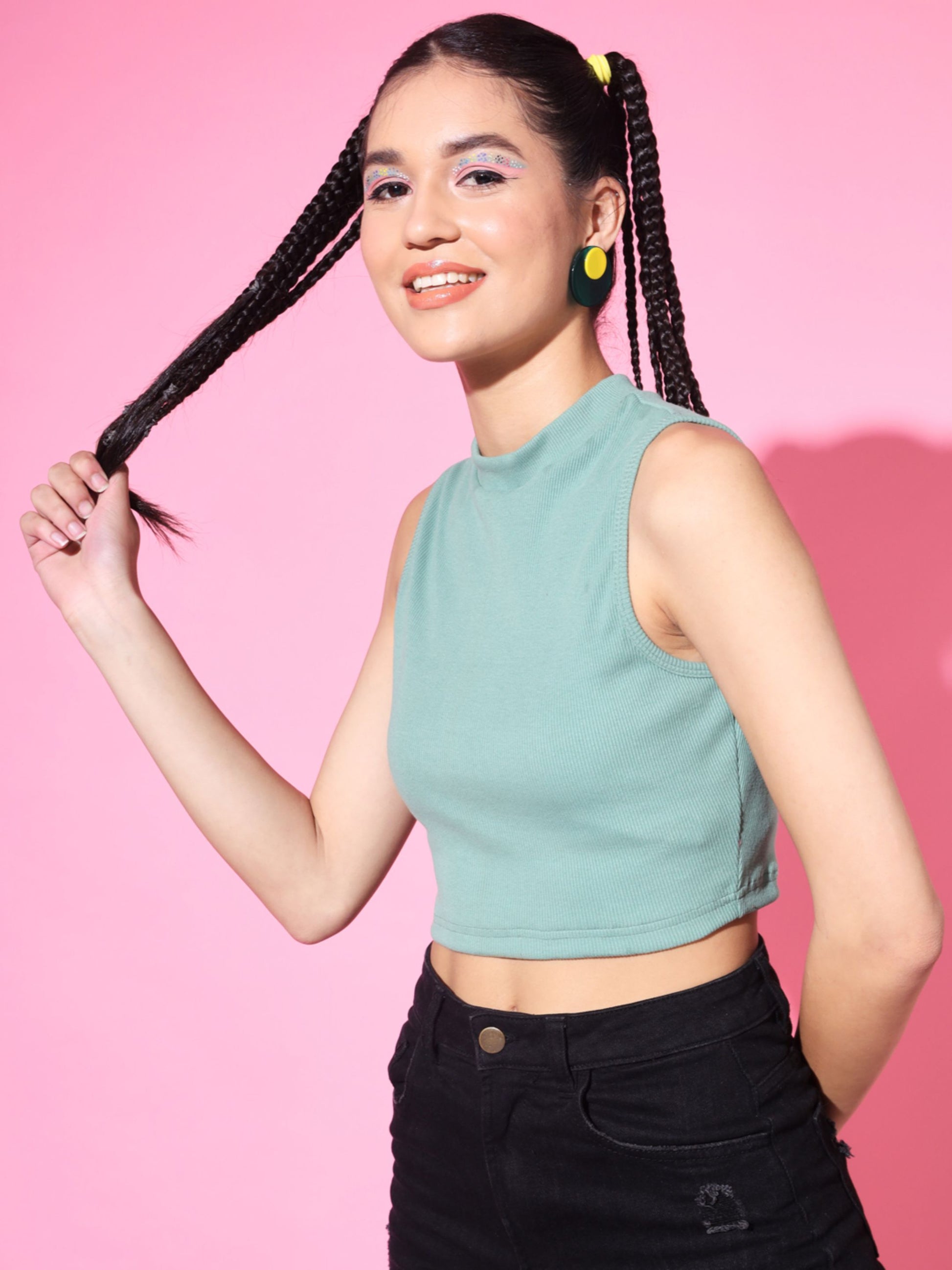 Elevate your casual wardrobe with our chic High Neck Crop Top, designed for the modern woman who values both style and comfort. This solid tank top features a flattering crop length and sleeveless design, making it perfect for layering or wearing on its own. The high neck adds a touch of sophistication, while the versatile black color pairs effortlessly with your favorite jeans or skirts. Embrace effortless elegance and make a statement with this essential piece that transitions seamlessly from day to night.