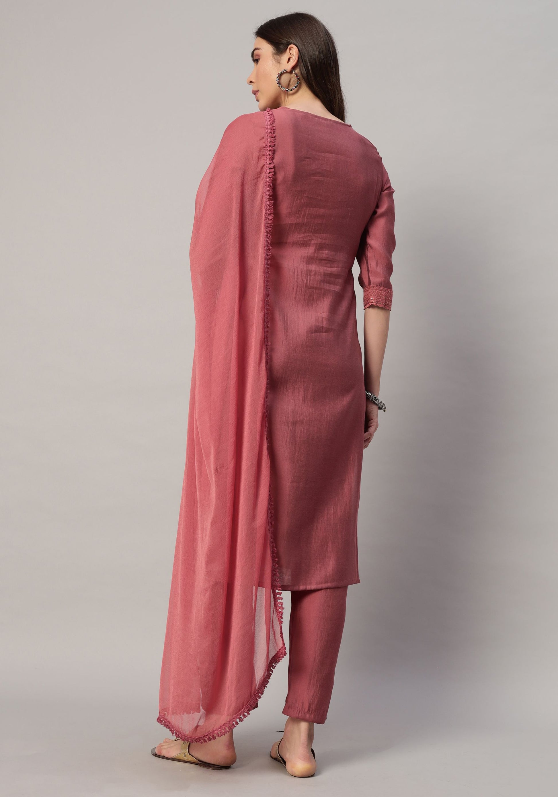 Women's Embroidered Silk Blend Kurta Pyjama & Dupatta Set