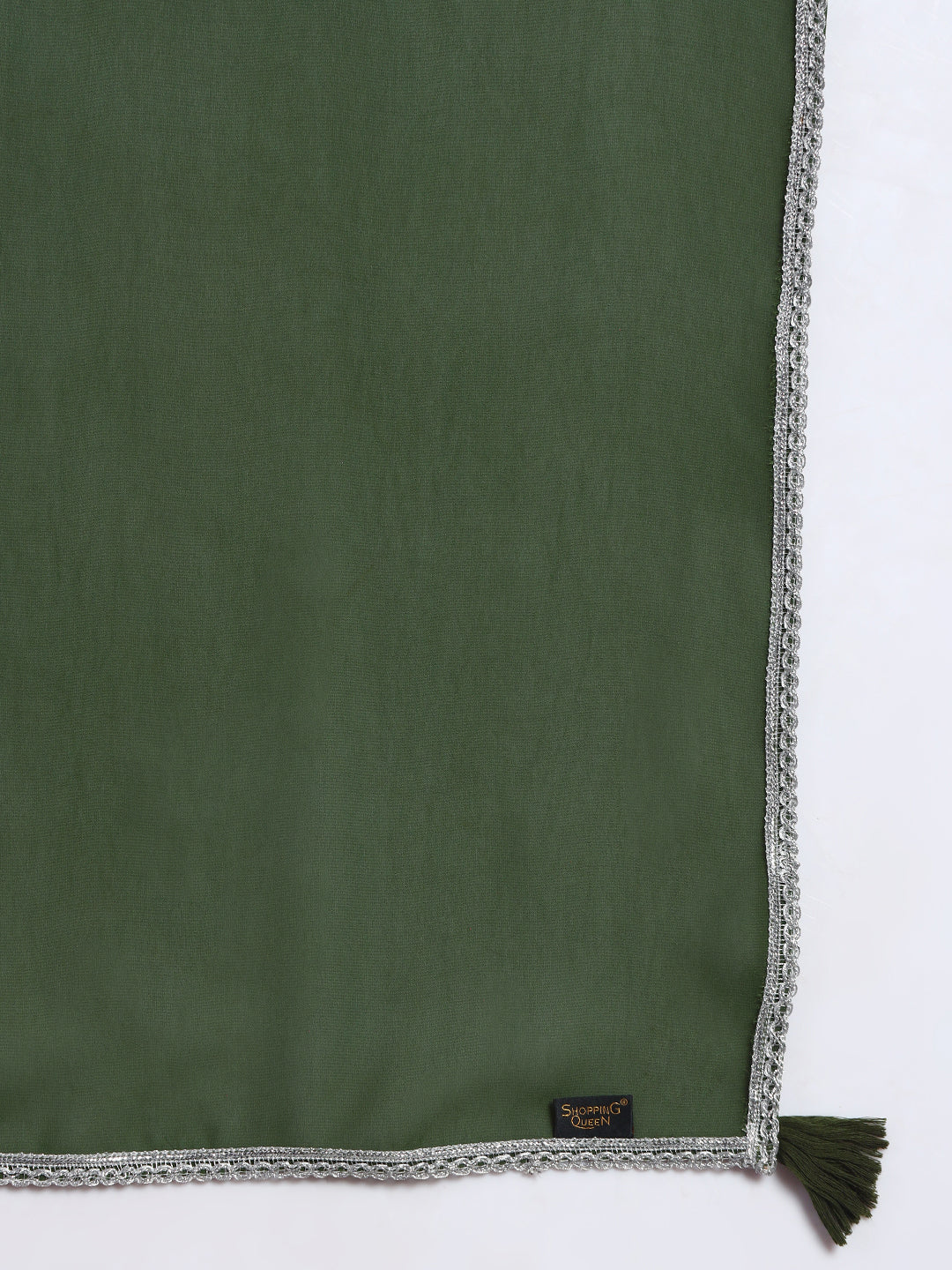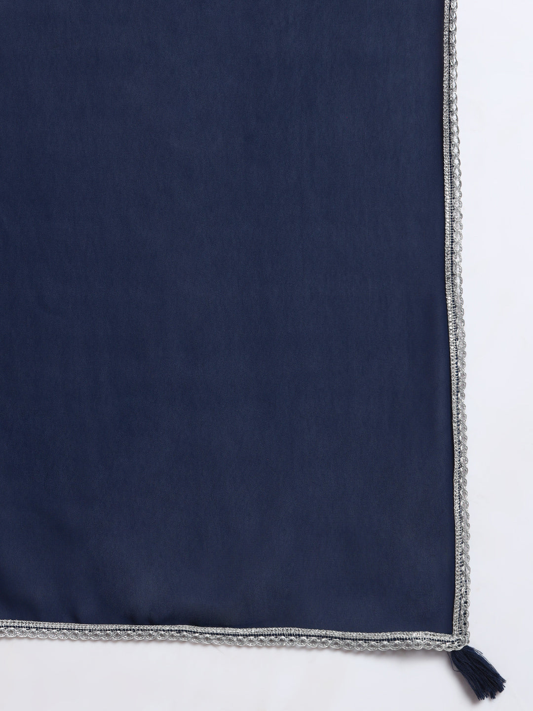 Elevate your ethnic wardrobe with this stunning embroidered kurta set, designed to make a statement at any occasion. Crafted from luxurious georgette fabric, this elegant kurti features intricate embroidery that adds a touch of elegance. The round neck and sleeveless provide a straight silhouette, while the calf-length kurti paired with a matching palazzo set ensures comfort and style. Complete with a beautifully adorned dupatta featuring tassels, this ensemble is perfect for festive celebrations or special gatherings.
