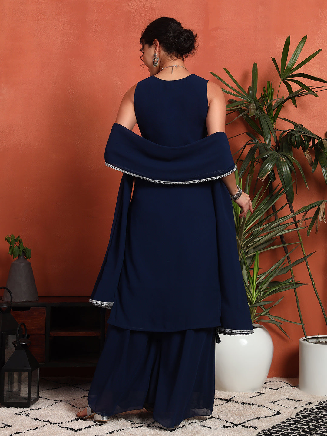 Women's Embroidered Georgette Kurta and Palazzo Set