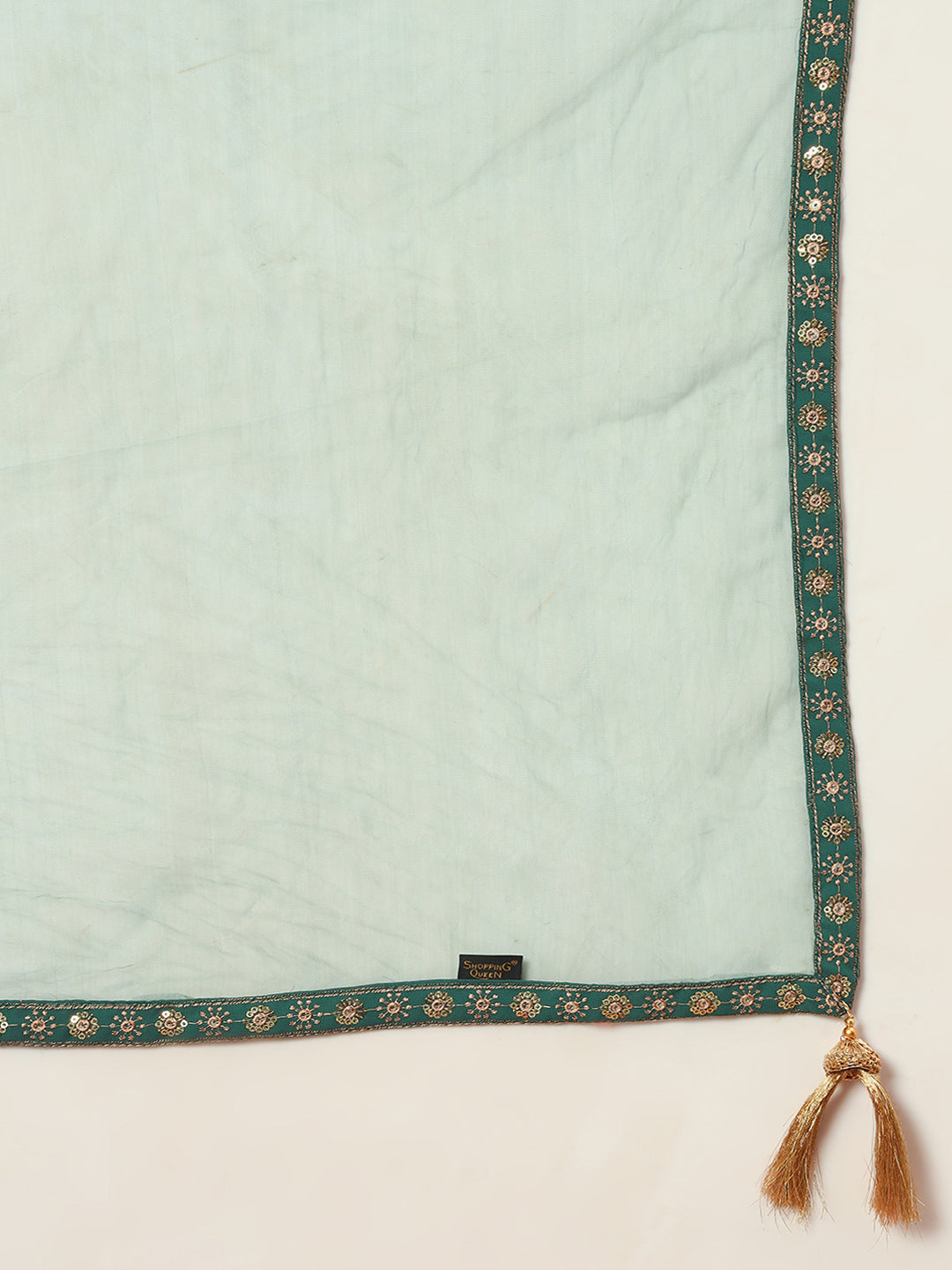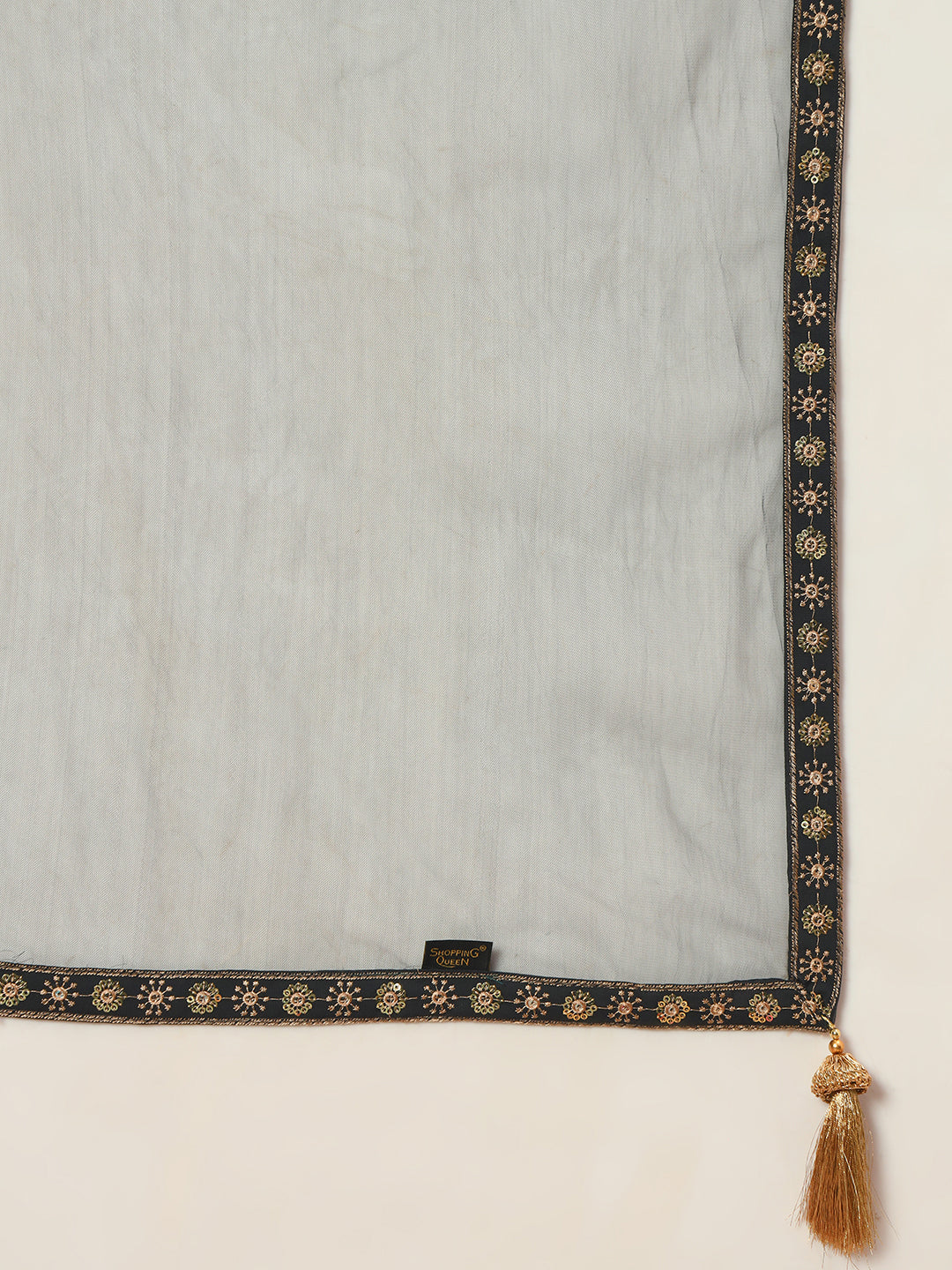 Elevate your ethnic wardrobe with this stunning embroidered kurta set, crafted from luxurious georgette and featuring a soft butter crepe inner for ultimate comfort. The empire waist kurta creates a flattering fit, while the V-neck and 3/4 sleeves add a touch of elegance. The side slits enhance movement, making it perfect for any occasion. Paired with a comfortable palazzo featuring an elasticated belt, this ensemble is completed with a matching dupatta adorned with exquisite zari tassels, ensuring you make a statement wherever you go.