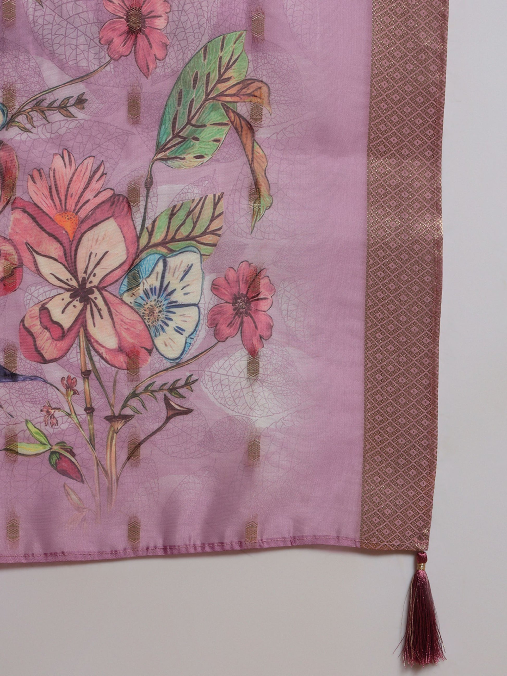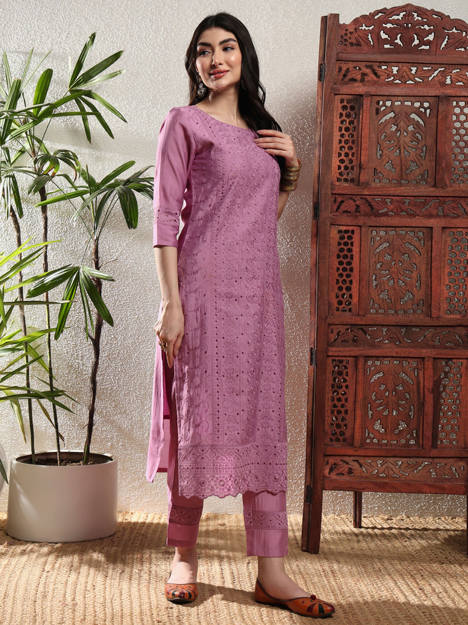 Light Purple Embroidered Viscose Women's Kurta, Pyjama & Dupatta Set