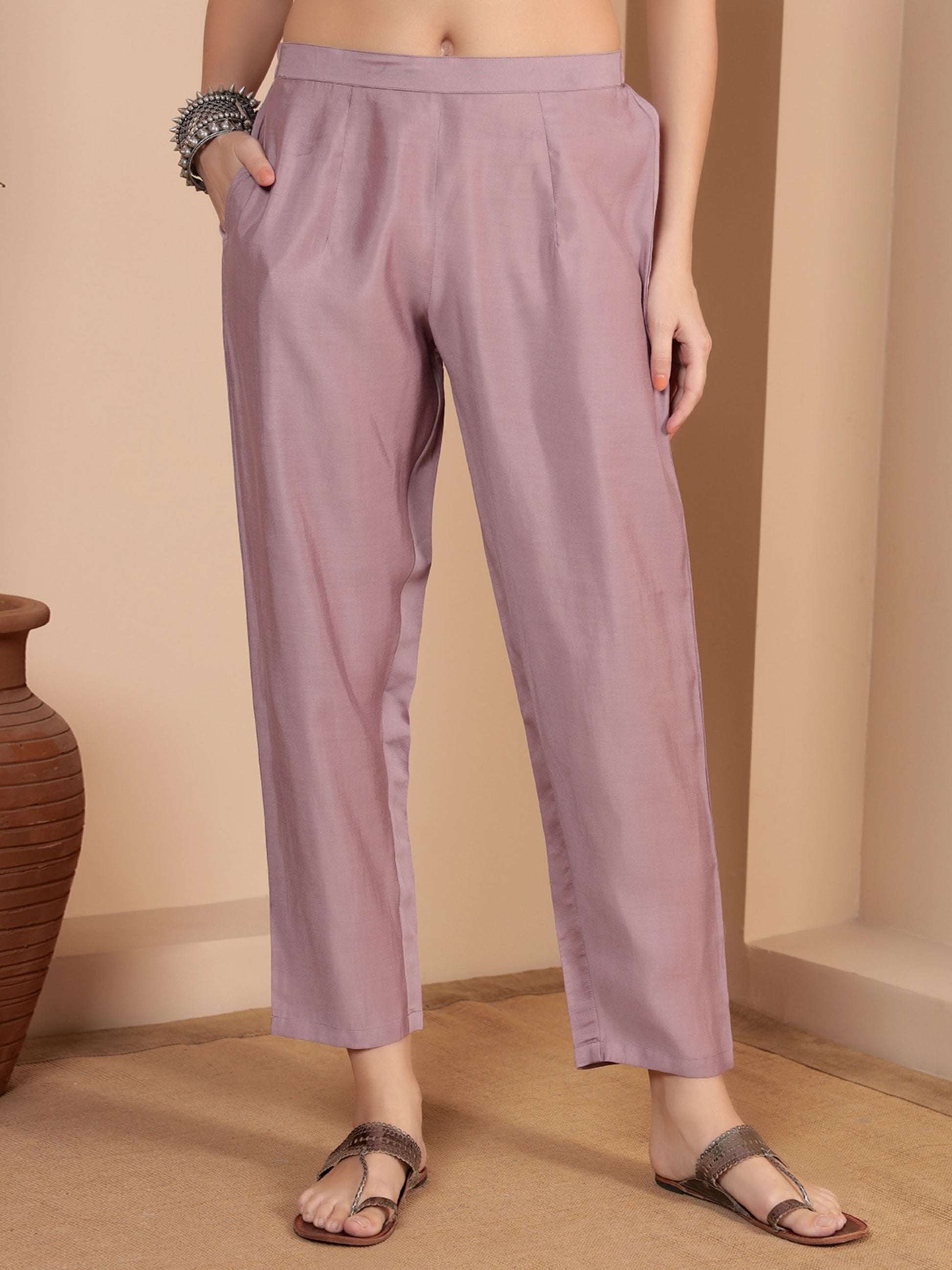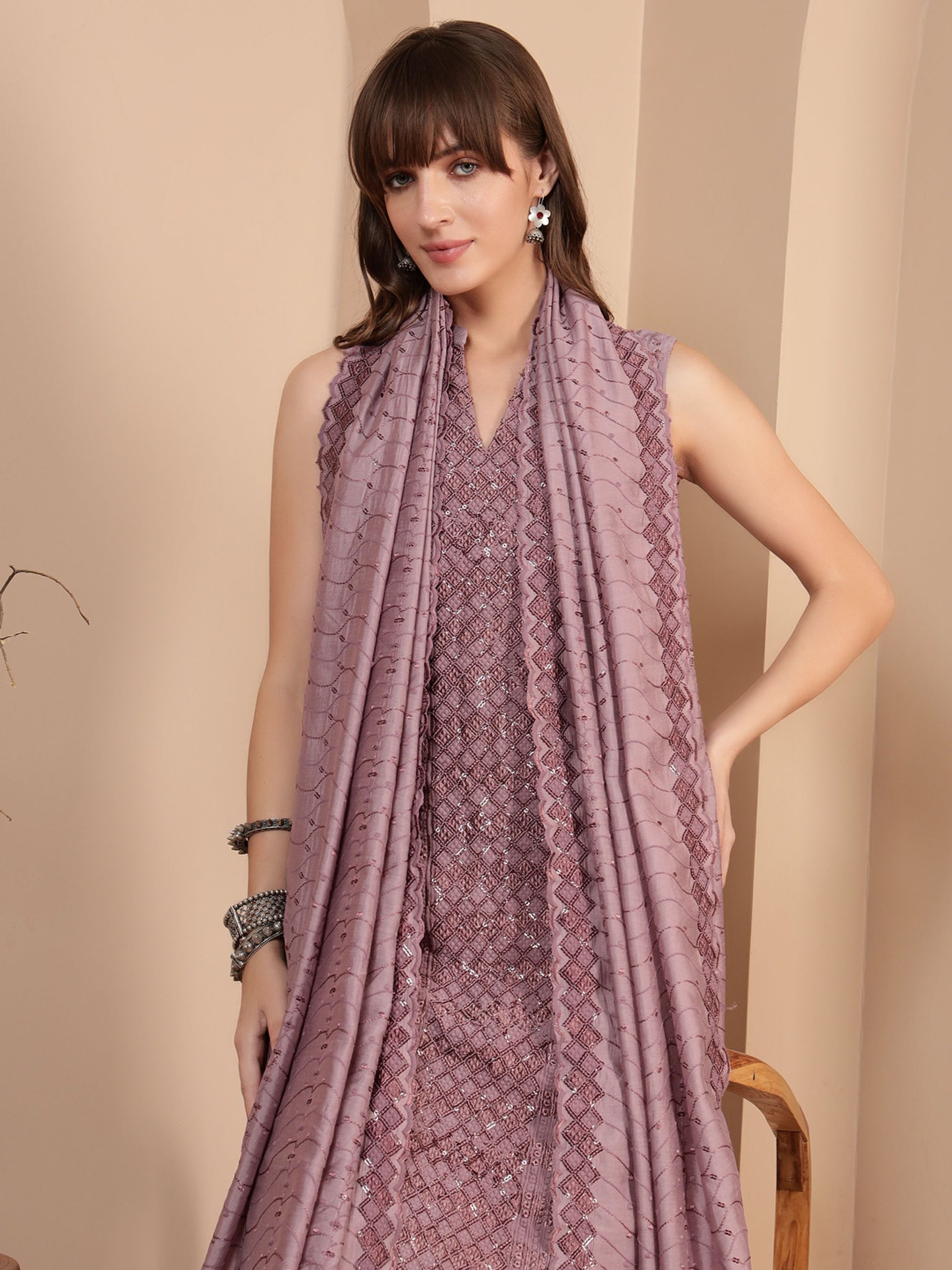 Mauve Embroidered Silk Blend Women's Kurta, Pyjama & Dupatta Set
