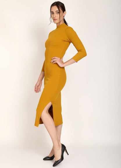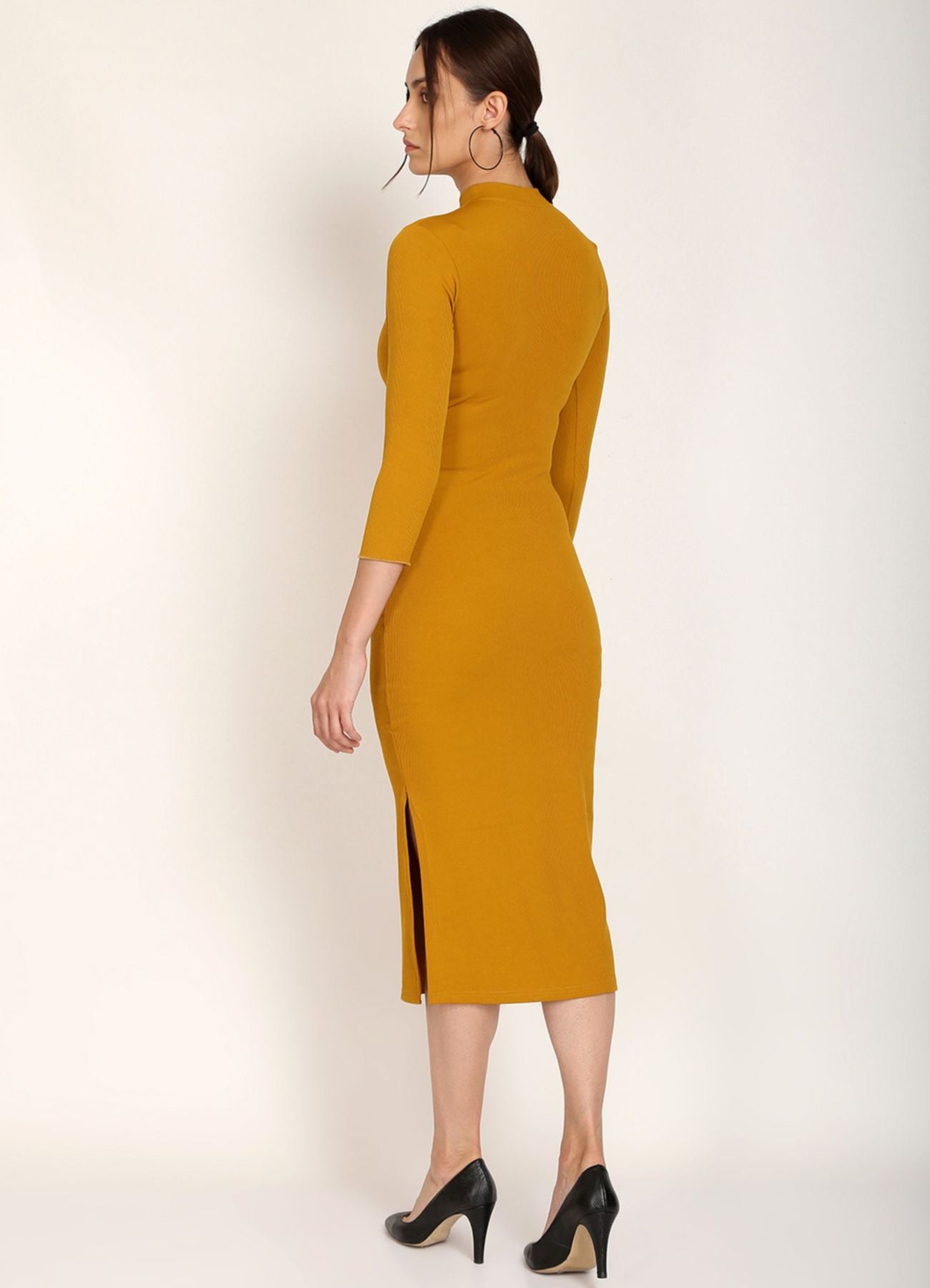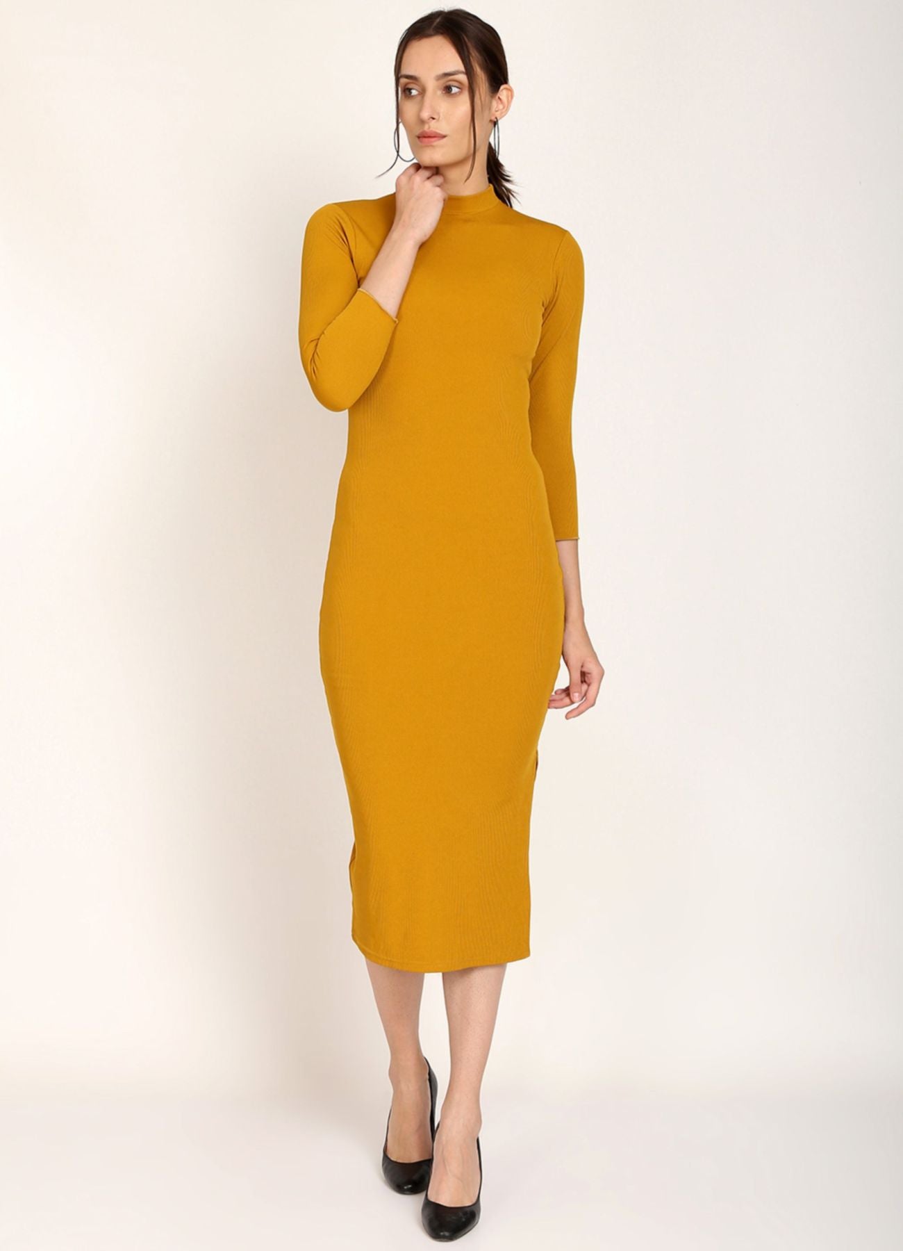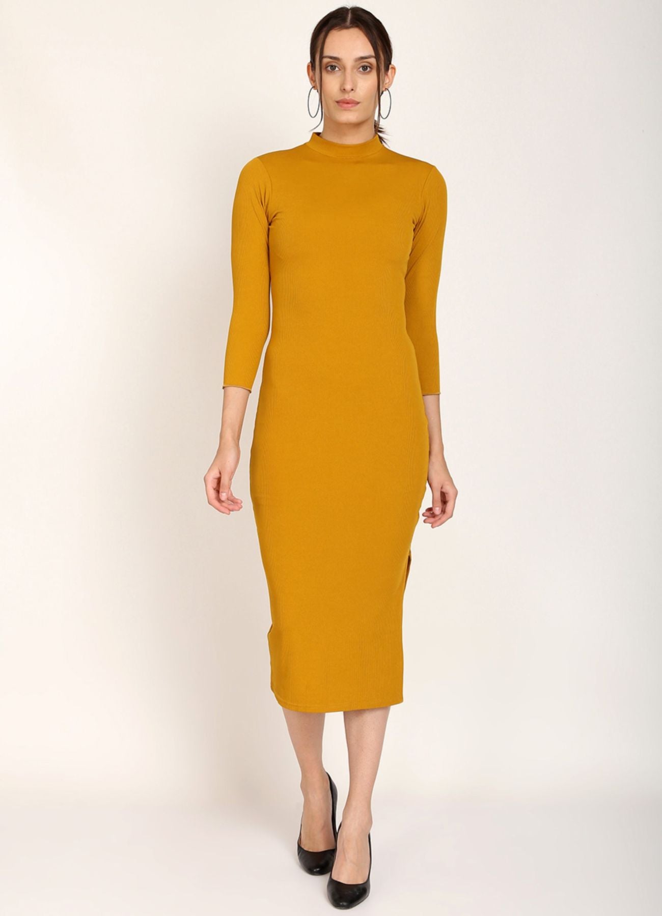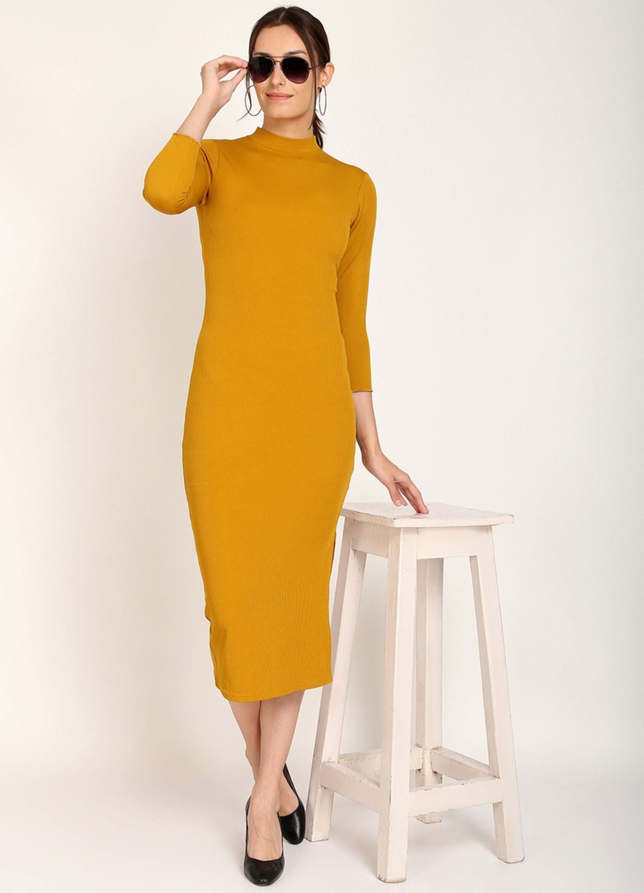 Elevate your wardrobe with our stunning bodycon dress, designed to make a statement. this calf-length A-line dress features a chic choker neck and elegant 3/4 sleeves, offering a perfect blend of sophistication and comfort. the solid pattern ensures versatility, making it suitable for both casual outings and formal events. embrace your curves and exude confidence in this timeless piece that promises to turn heads wherever you go.