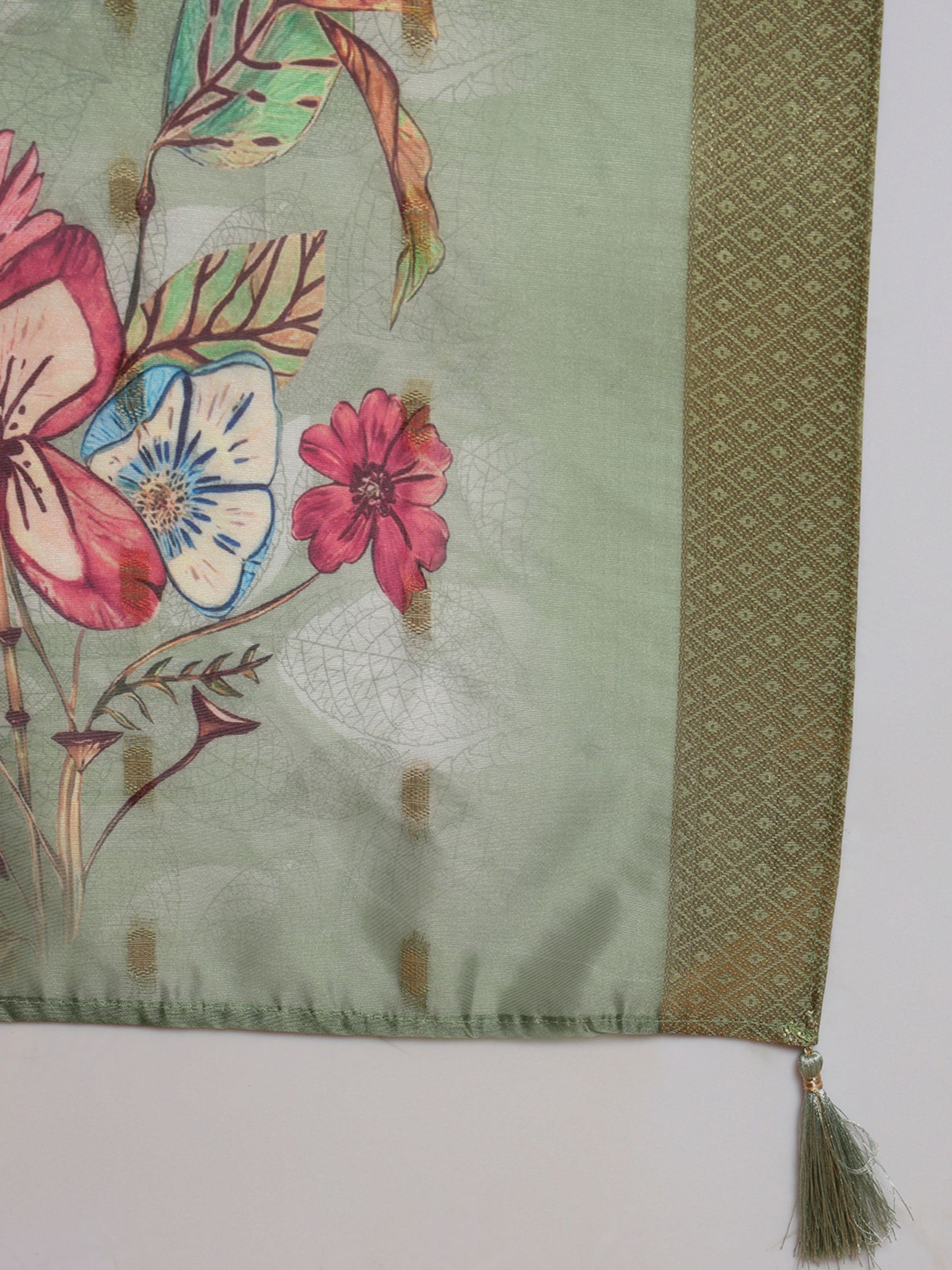 Olive Green Embroidered Viscose Women's Kurta, Pyjama & Dupatta Set