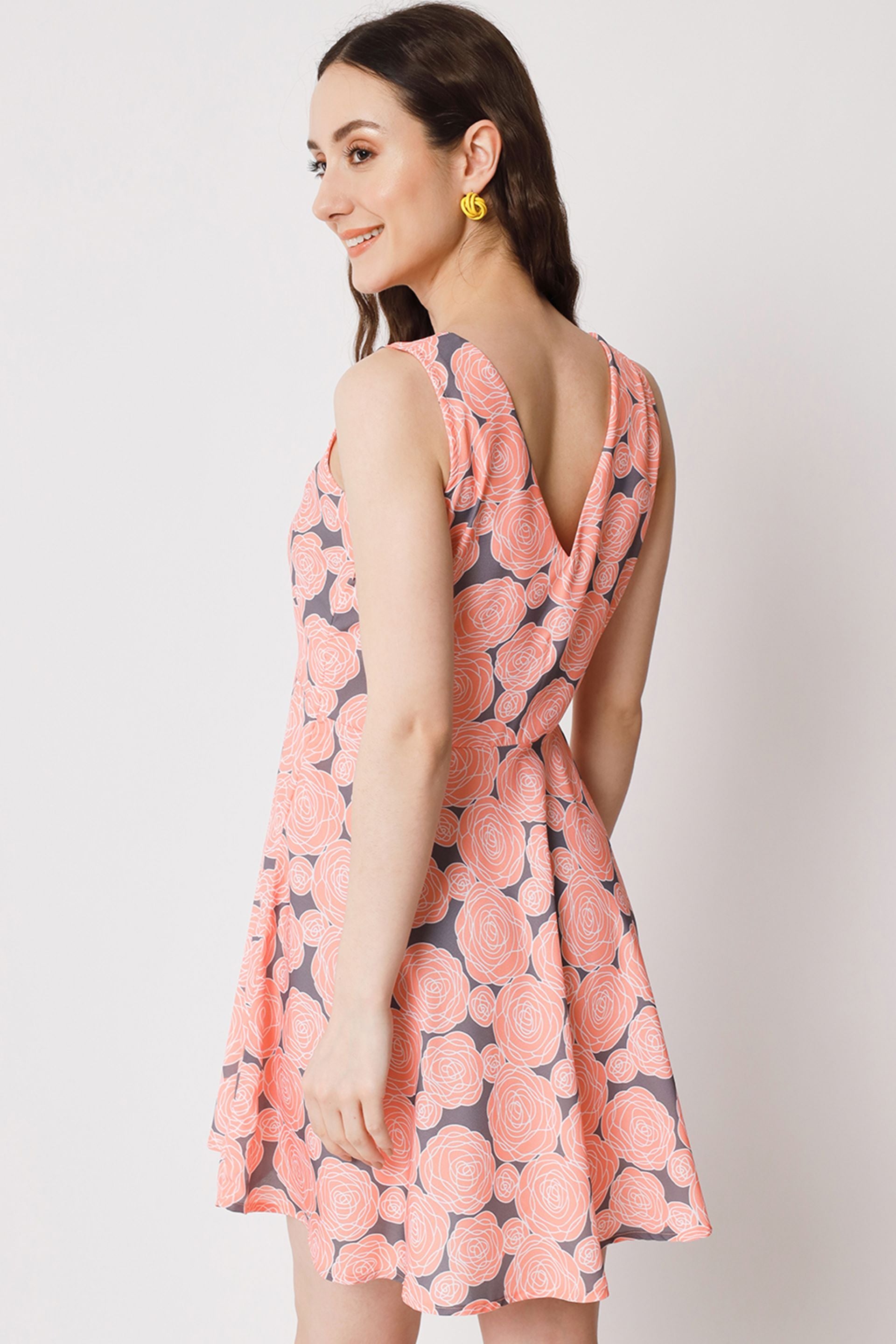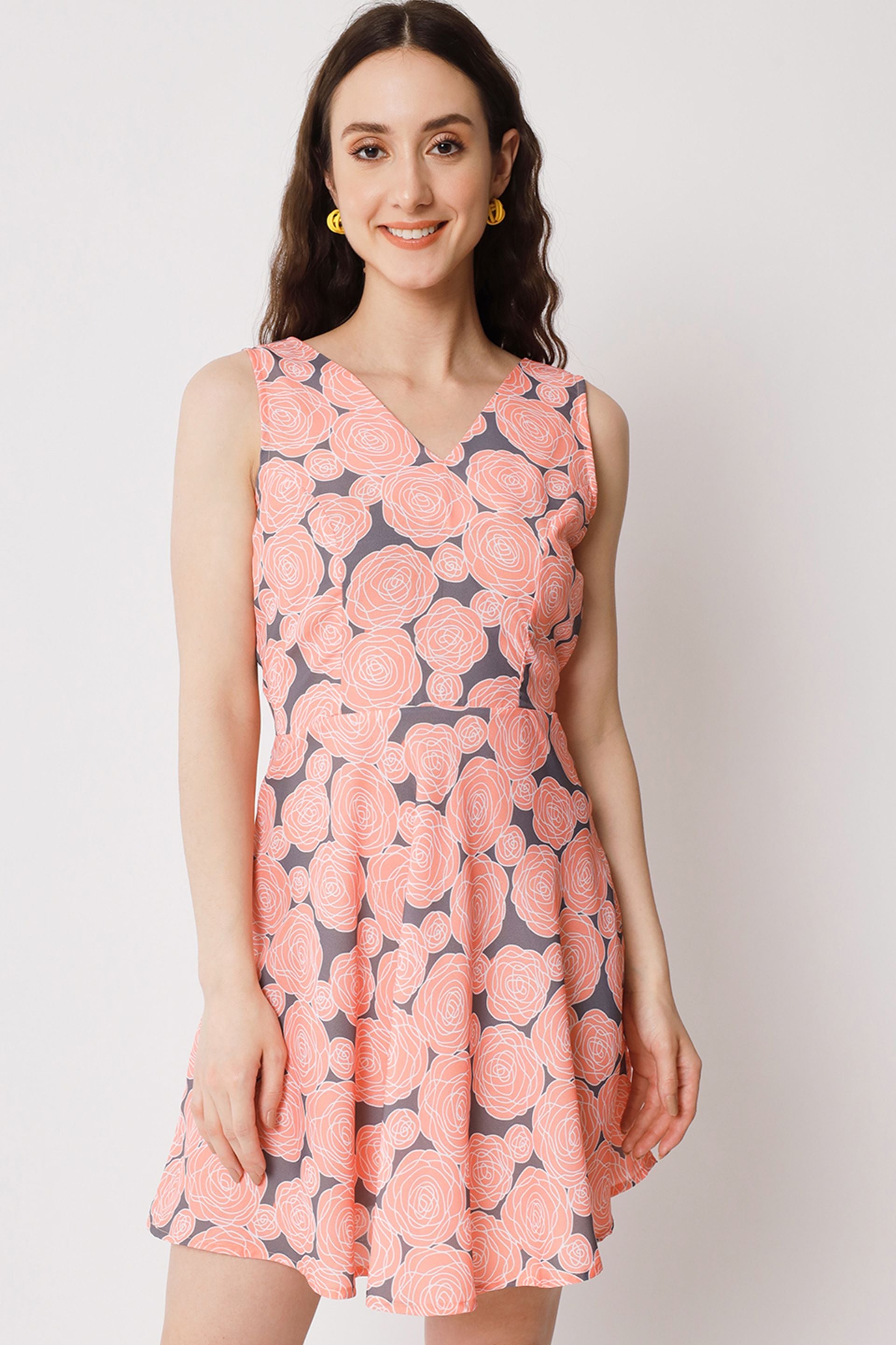 Elevate your wardrobe with our stunning floral skater dress, designed to make a statement at any occasion. this mini thigh-length dress features a flattering flared shape and a chic V-neckline, perfect for showcasing your favorite accessories. the sleeveless design ensures comfort and breathability, while the vibrant floral print adds a touch of femininity and charm. whether you're heading to a summer garden party or a casual brunch, this dress is the ideal choice for effortless style and elegance.