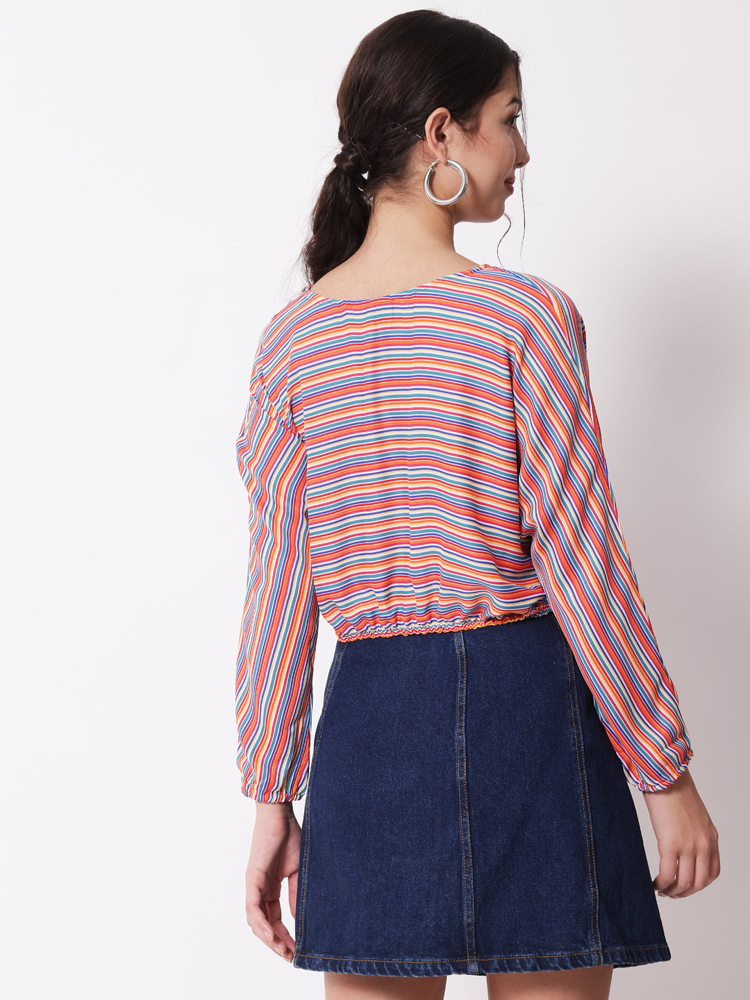 Women's Party Full Sleeve Striped Red Multicolor Top