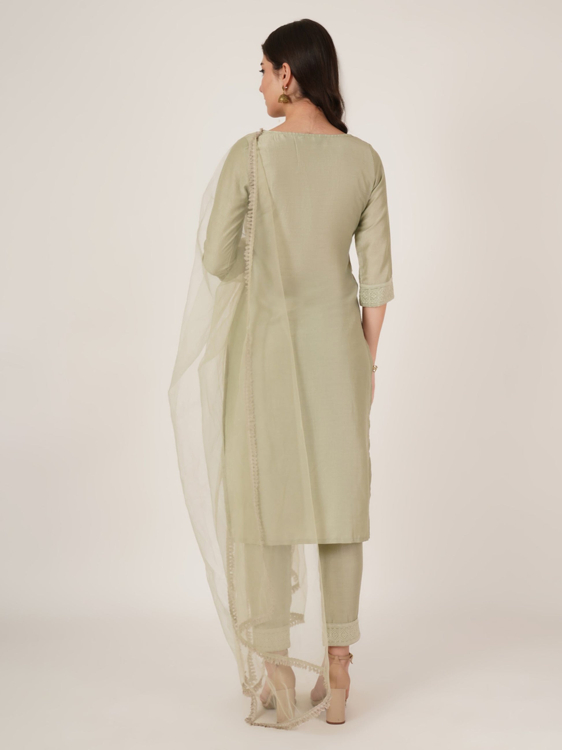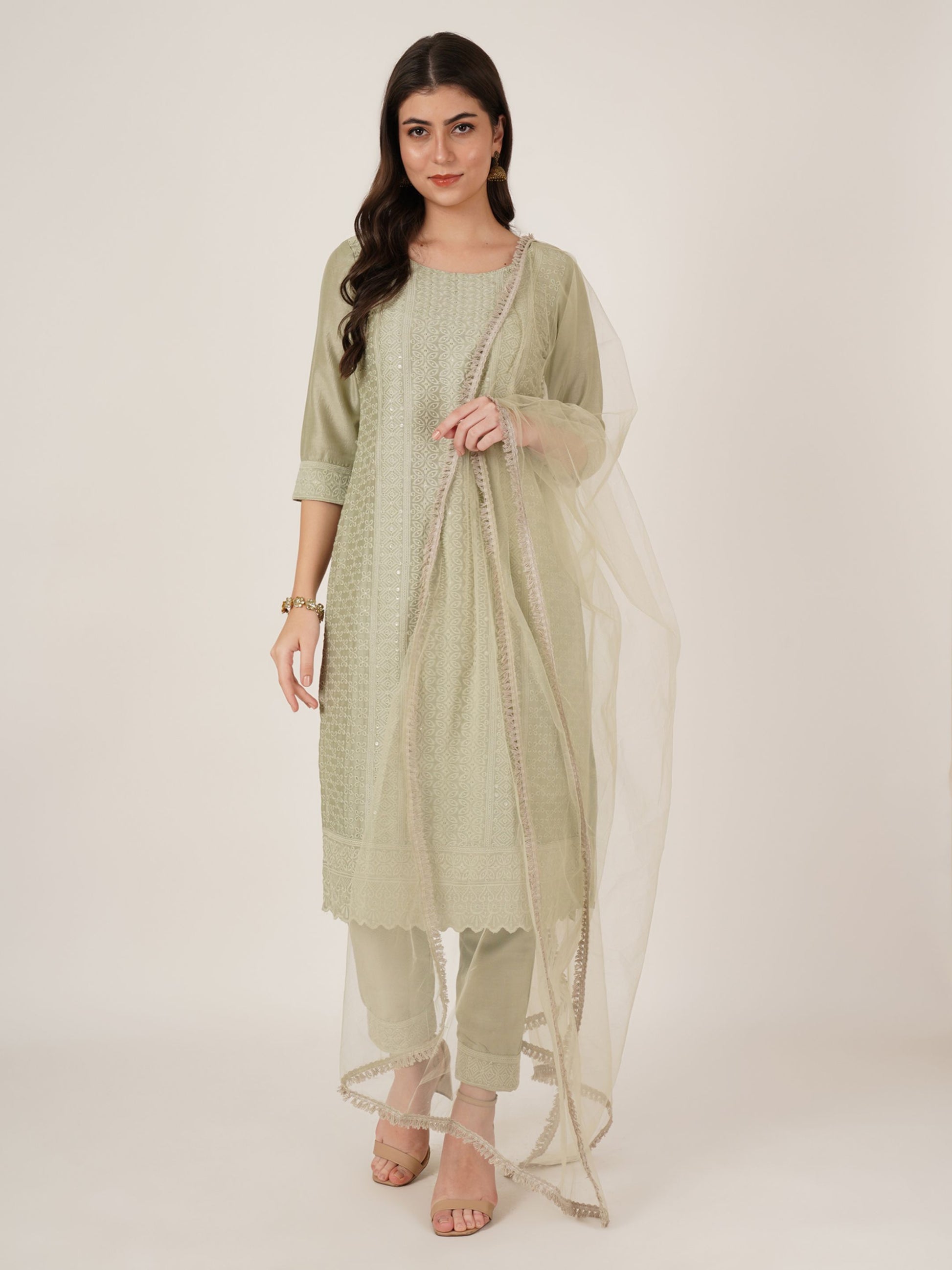 Women's Embroidered Silk Blend Kurta Pyjama & Dupatta Set