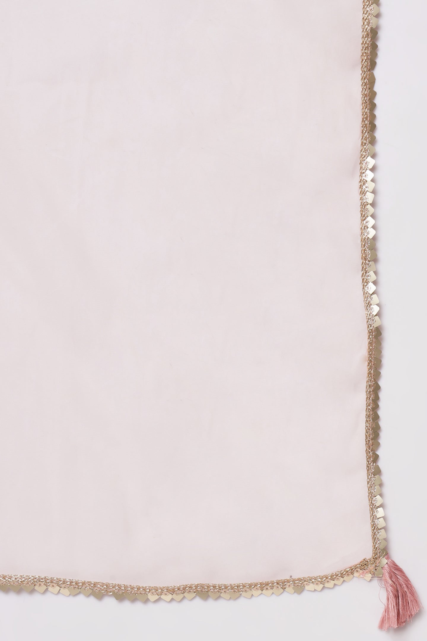 Elevate your ethnic wardrobe with this stunning embroidered kurta set, designed to make a statement at any occasion. The calf-length kurta features a straight silhouette with a sophisticated boat neck and 3/4 sleeves, adorned with exquisite sequinned embroidery that adds a touch of elegance. Paired with solid palazzo pants that offer comfort and style, this ensemble is perfect for both festive celebrations and casual gatherings. The included dupatta, crafted from soft fabric and finished with charming tassels, completes the look, making it a versatile addition to your collection. Embrace tradition with a modern twist and step out in confidence with this beautiful kurta set.
