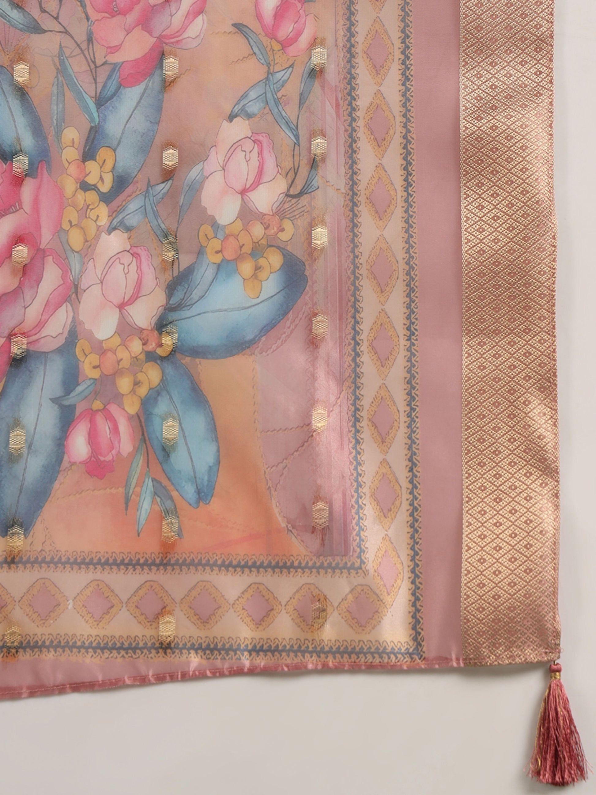 Peach Embroidered Silk Women's Kurta, Pyjama & Dupatta Set