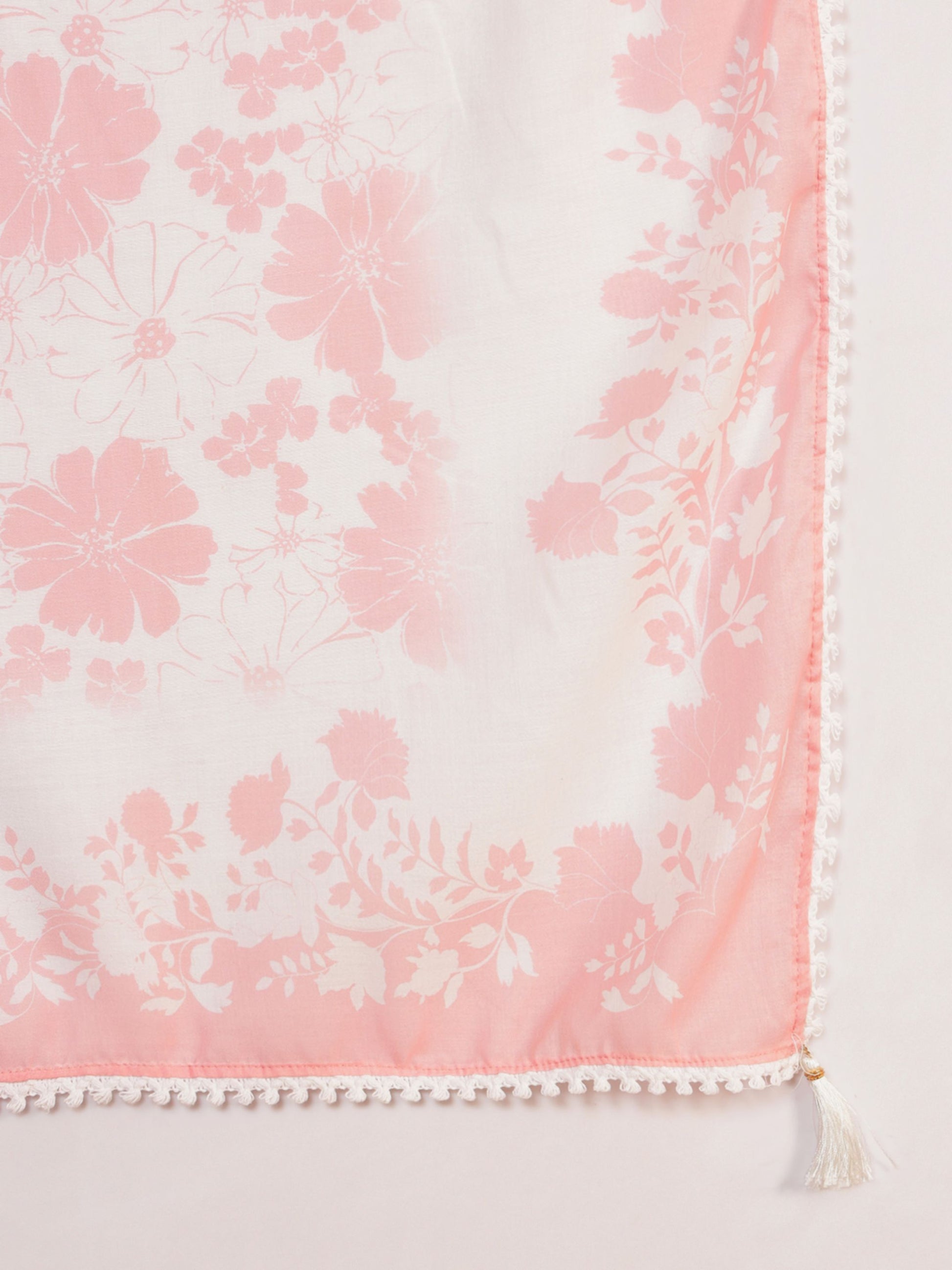 Peach Embroidered Viscose Women's Kurta, Pyjama & Dupatta Set
