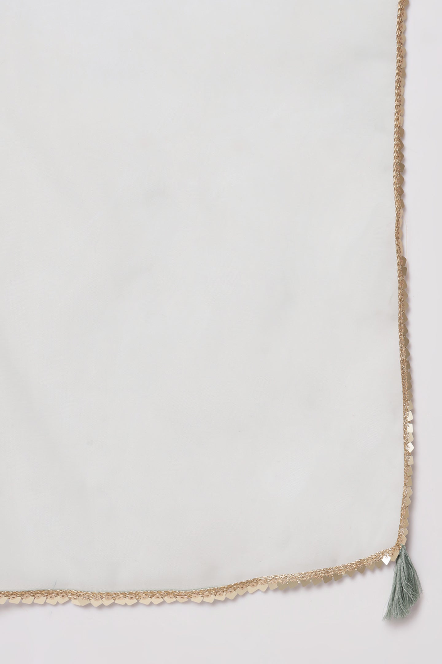 Elevate your ethnic wardrobe with this stunning embroidered kurta set, designed to make a statement at any occasion. The calf-length kurta features a straight silhouette with a sophisticated boat neck and 3/4 sleeves, adorned with exquisite sequinned embroidery that adds a touch of elegance. Paired with solid palazzo pants that offer comfort and style, this ensemble is perfect for both festive celebrations and casual gatherings. The included dupatta, crafted from soft fabric and finished with charming tassels, completes the look, making it a versatile addition to your collection. Embrace tradition with a modern twist and step out in confidence with this beautiful kurta set.