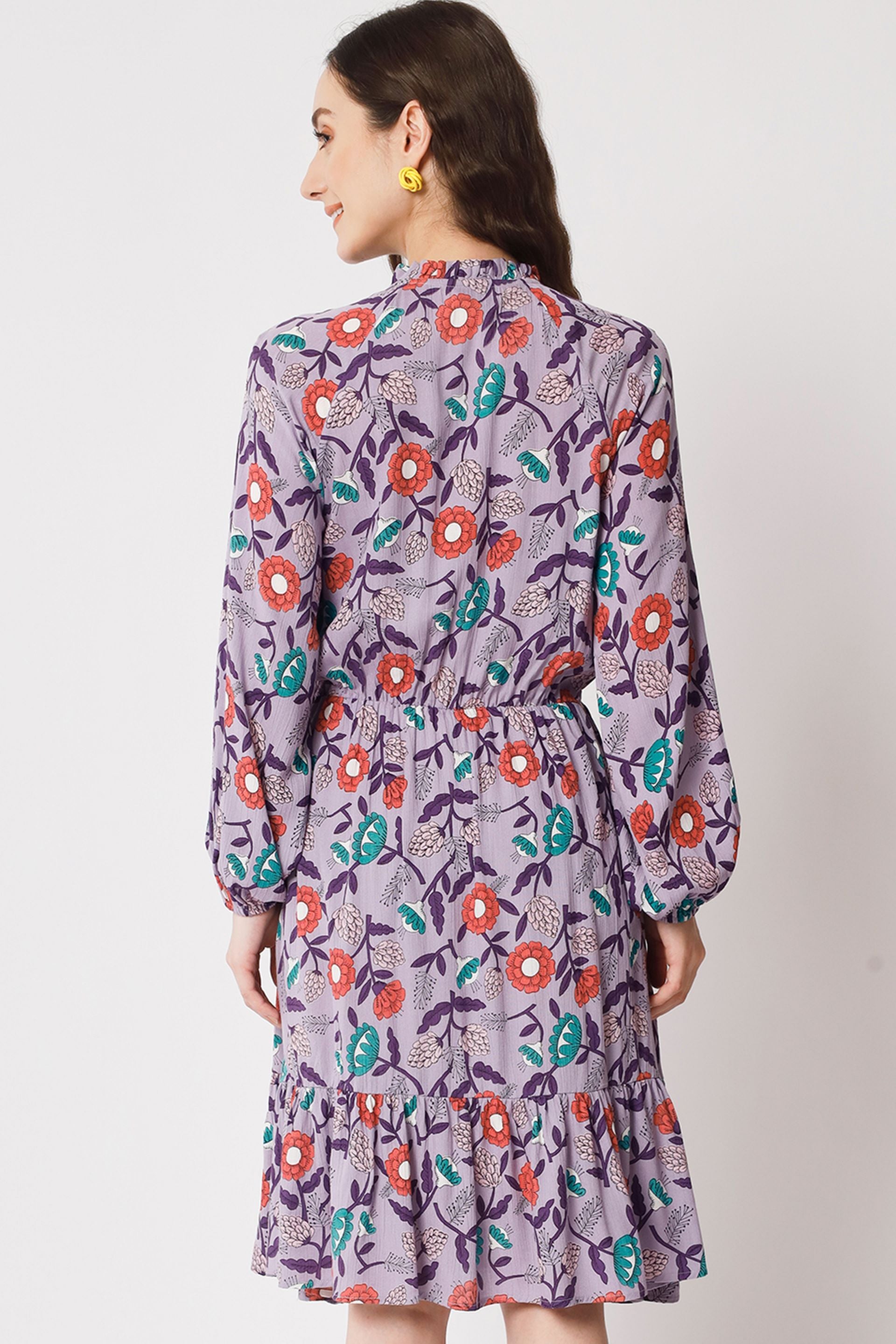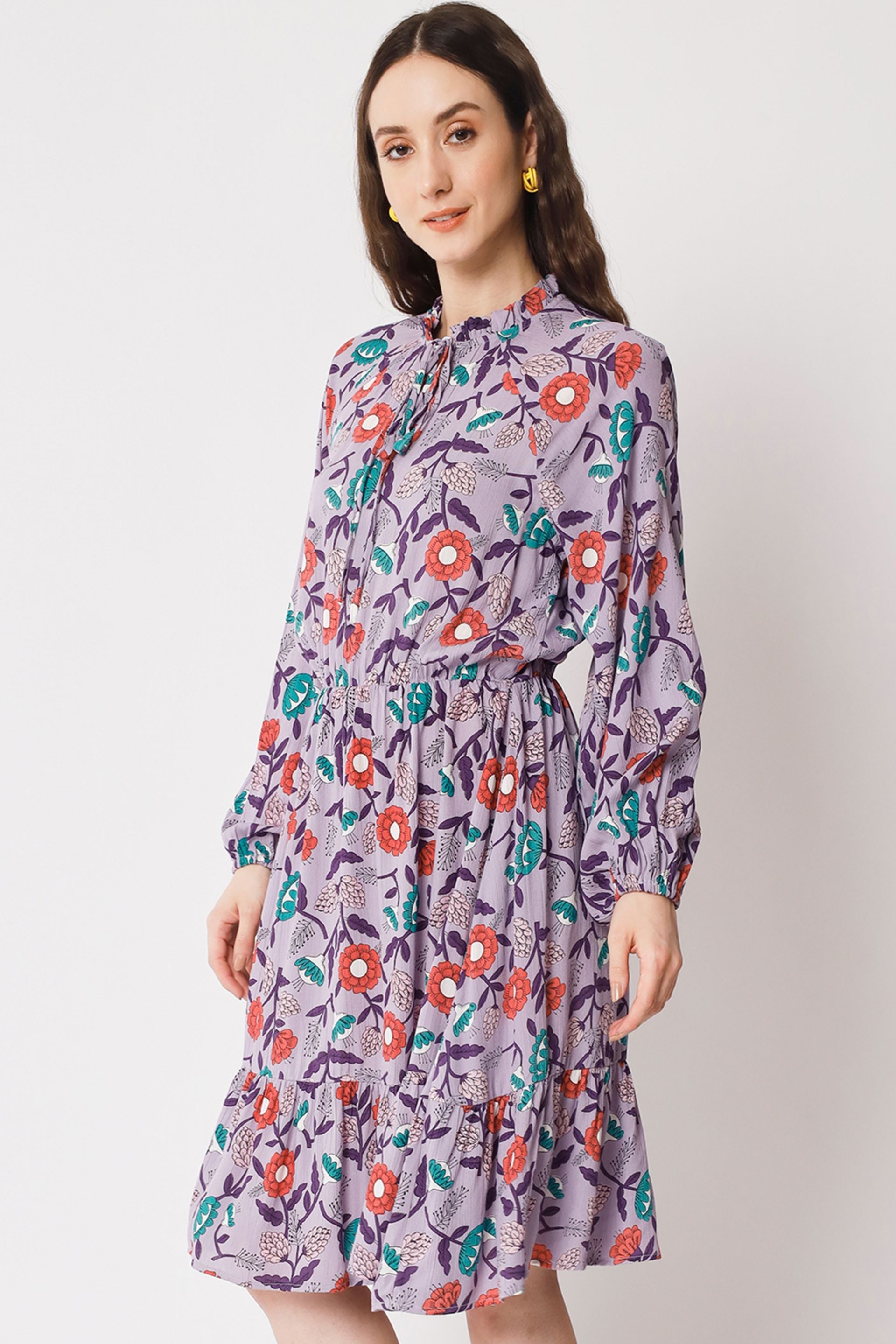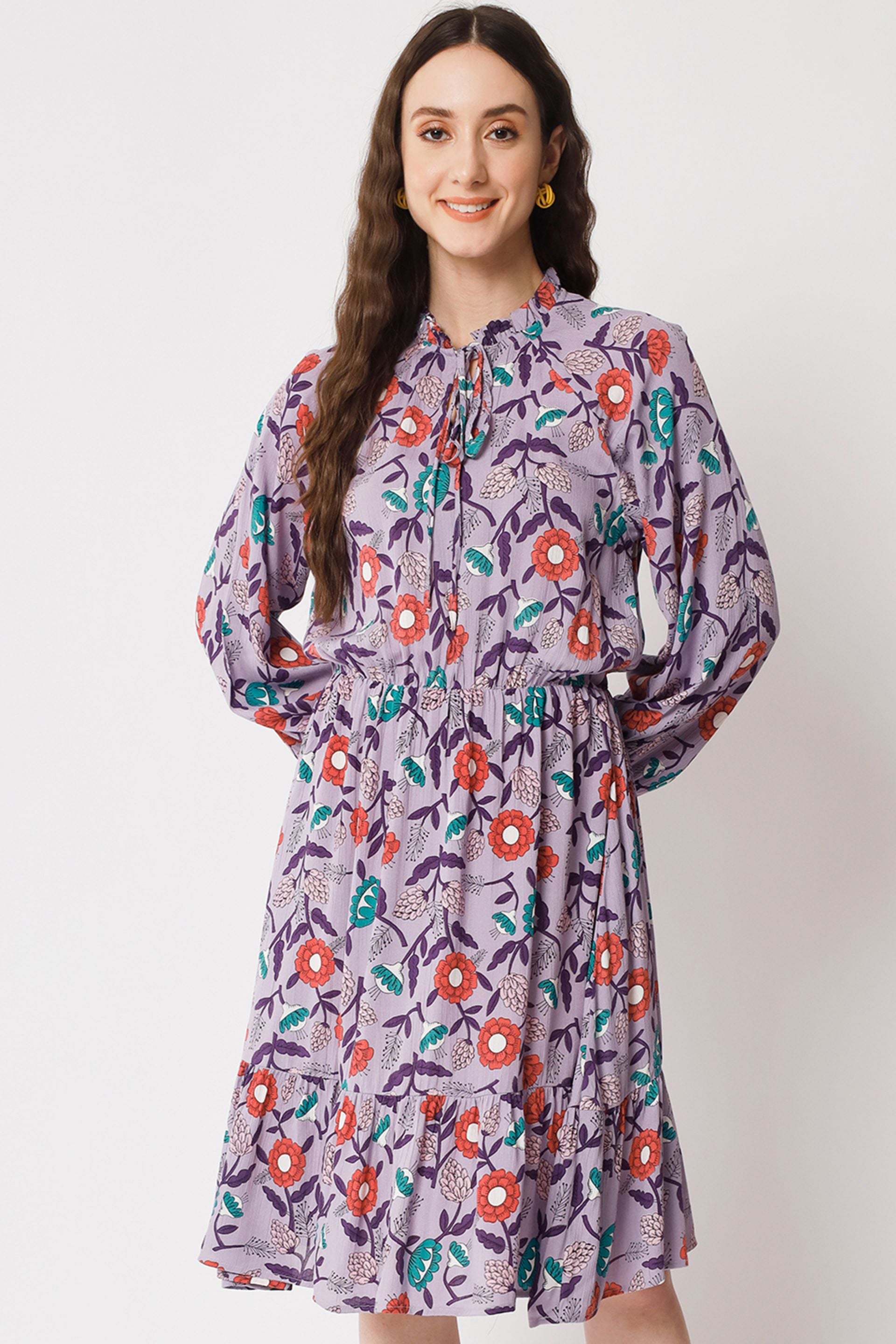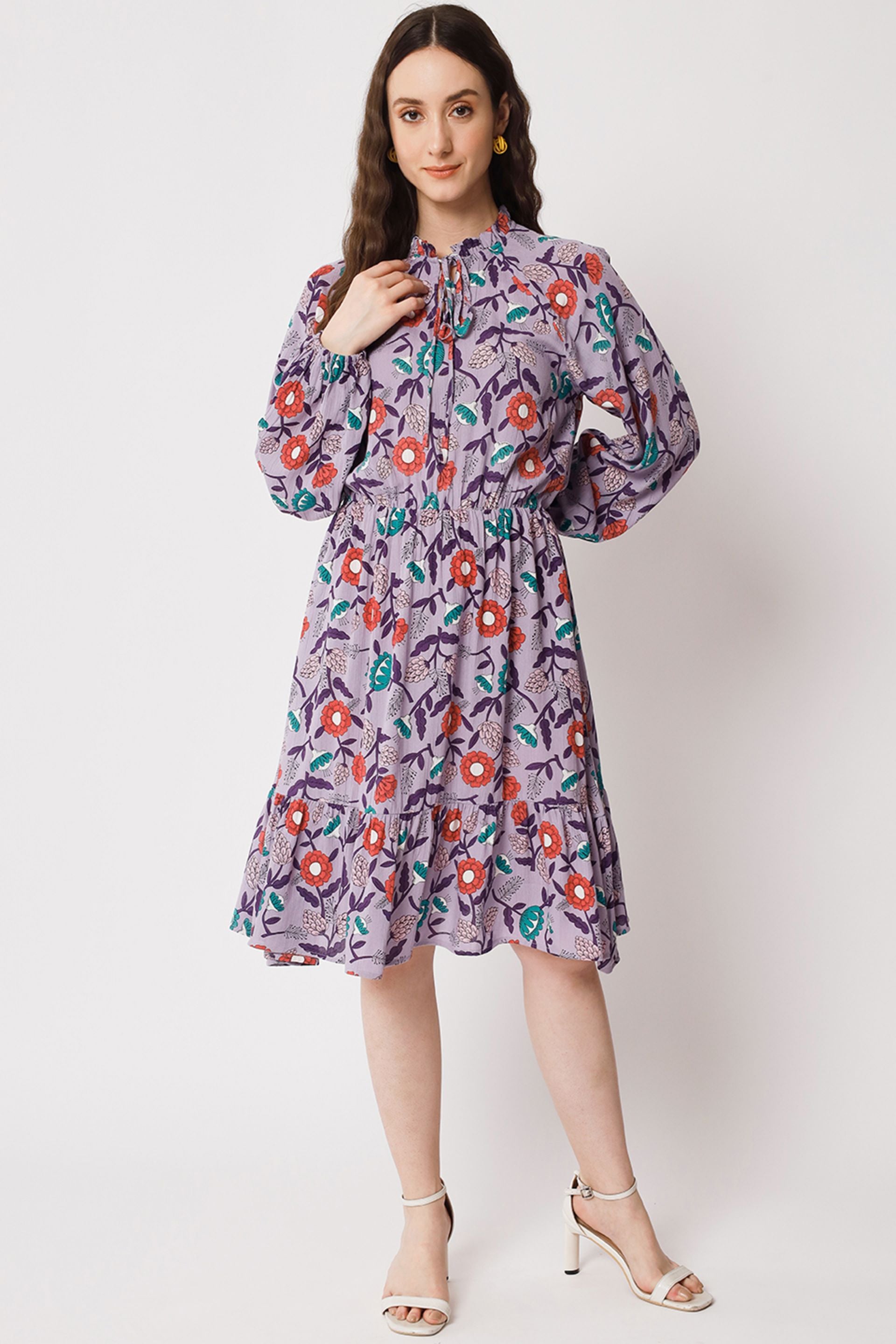 Elevate your wardrobe with our stunning floral dress, designed to make a statement. this knee-length fit and flare dress features a charming tie-up neck and playful full sleeves, offering a perfect blend of comfort and style. the unique tie-dye pattern adds a touch of artistic flair, making it ideal for both casual outings and special occasions. embrace effortless elegance and versatility with this must-have piece that will surely turn heads wherever you go.