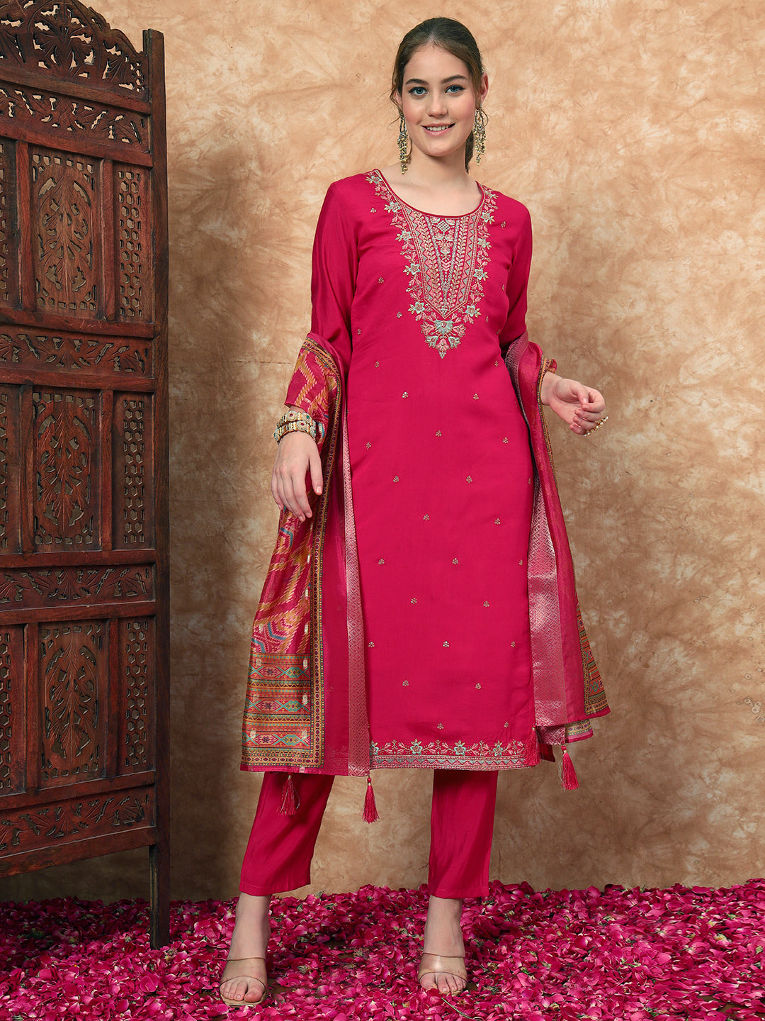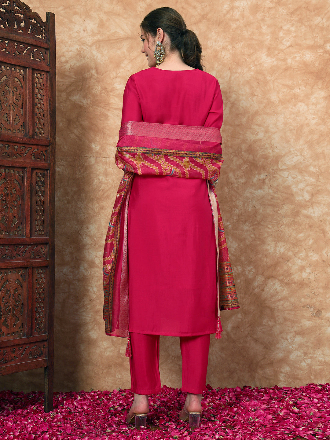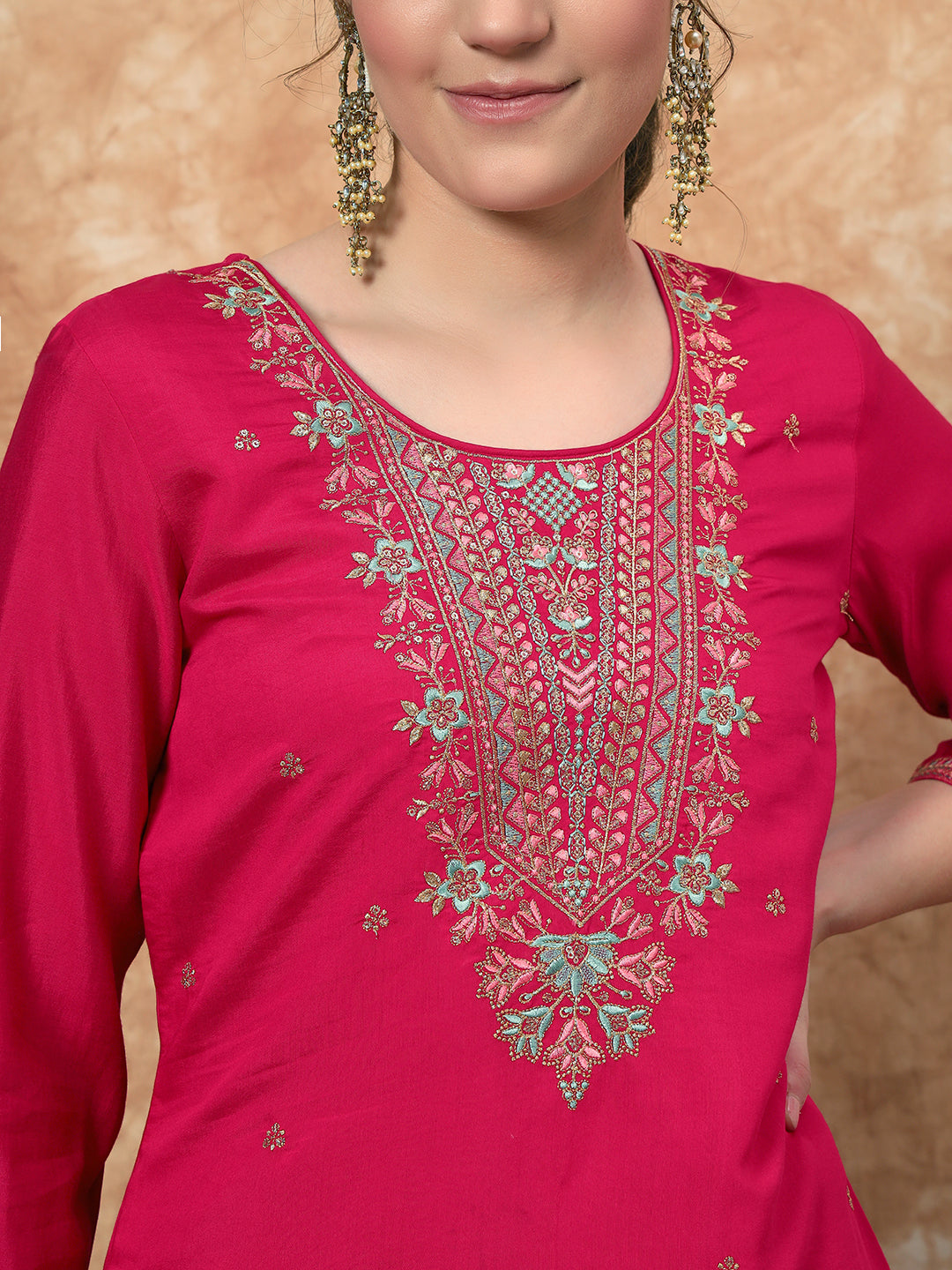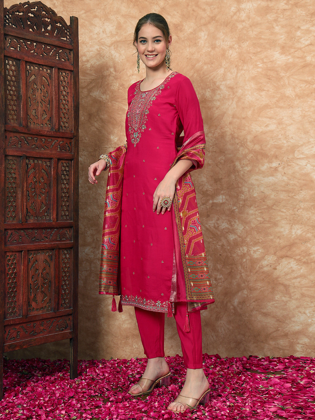 Women's Embroidered Silk Kurta, Pyjama & Dupatta Set