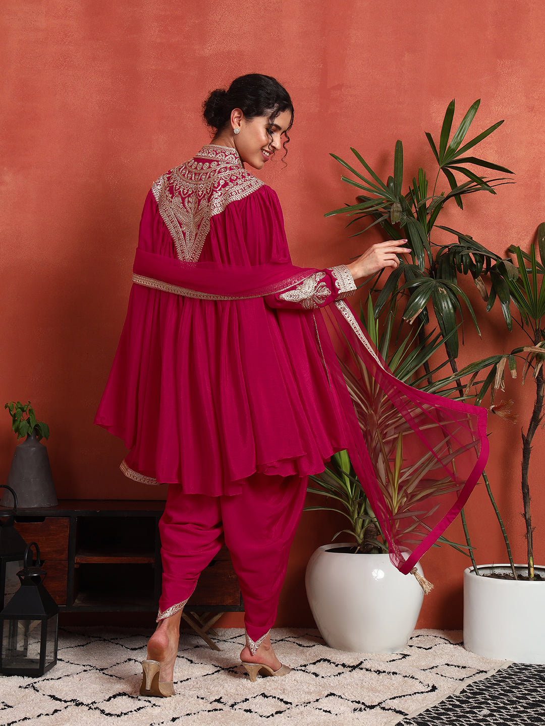Women's Embroidered Silk Blend Kurta, Dhoti Pant & Dupatta Set