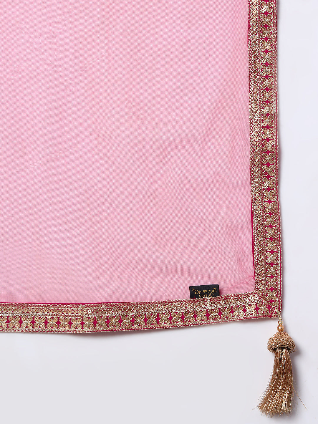 Elevate your ethnic wardrobe with this stunning kurta suit, crafted from soft chinnon fabric for a luxurious feel. The flared kurta features a stylish collar neck, full sleeves, and a flared hemline that adds a touch of elegance to your look. Paired with comfortable dhoti pants that have an elasticated waist, this set ensures you stay chic without compromising on comfort. Complete your ensemble with the matching dupatta adorned with playful tassels, making it perfect for festive occasions or casual outings. Embrace effortless style and make a statement with this beautiful kurta suit!