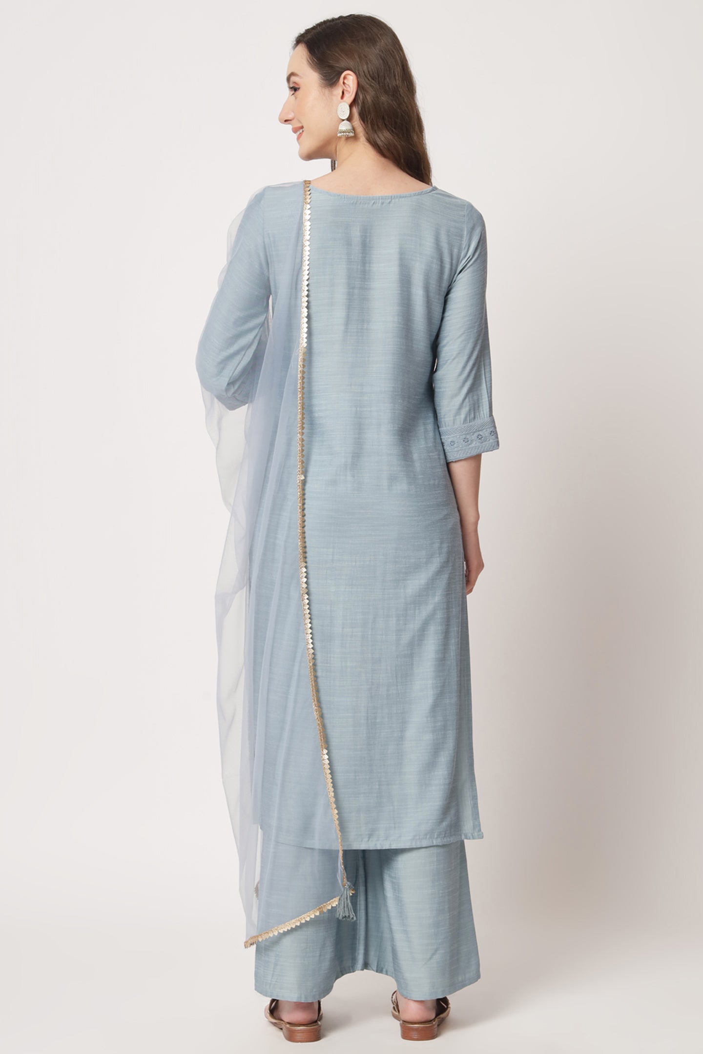 Women's Embroidered Silk Blend Kurta and Palazzo Set