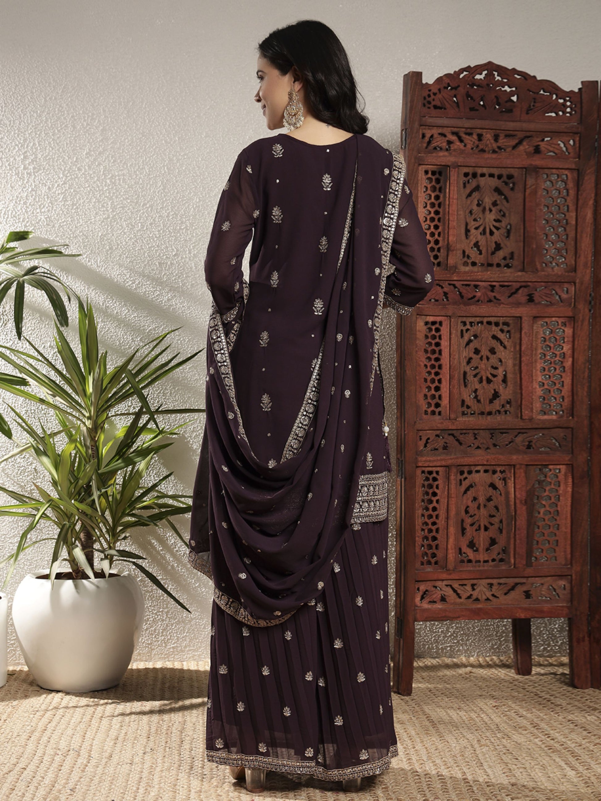 Starbucks Brown Embroidered Georgette Women's Kurta and Palazzo Set