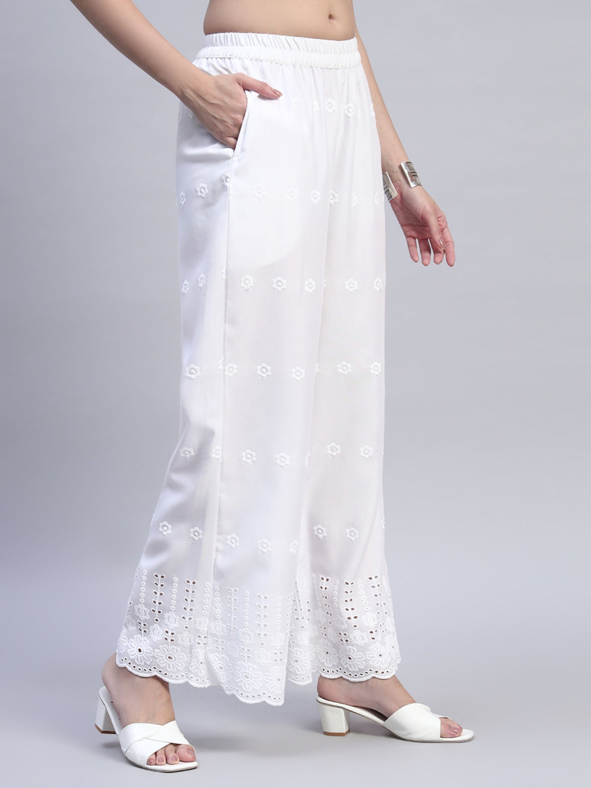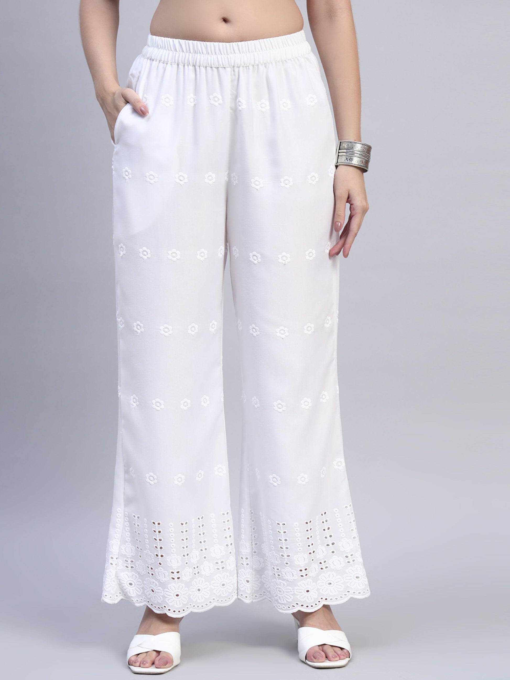 Enhance your ethnic wardrobe with this exquisite Chikankari Lucknowi Palazzo in classic white. Designed with intricate hand-embroidered patterns, this palazzo exudes timeless elegance and comfort. The soft, breathable fabric ensures ease of movement, while the elastic waistband provides a perfect fit. Whether paired with a traditional kurti or a modern top, this versatile piece adds a touch of sophistication to your look.